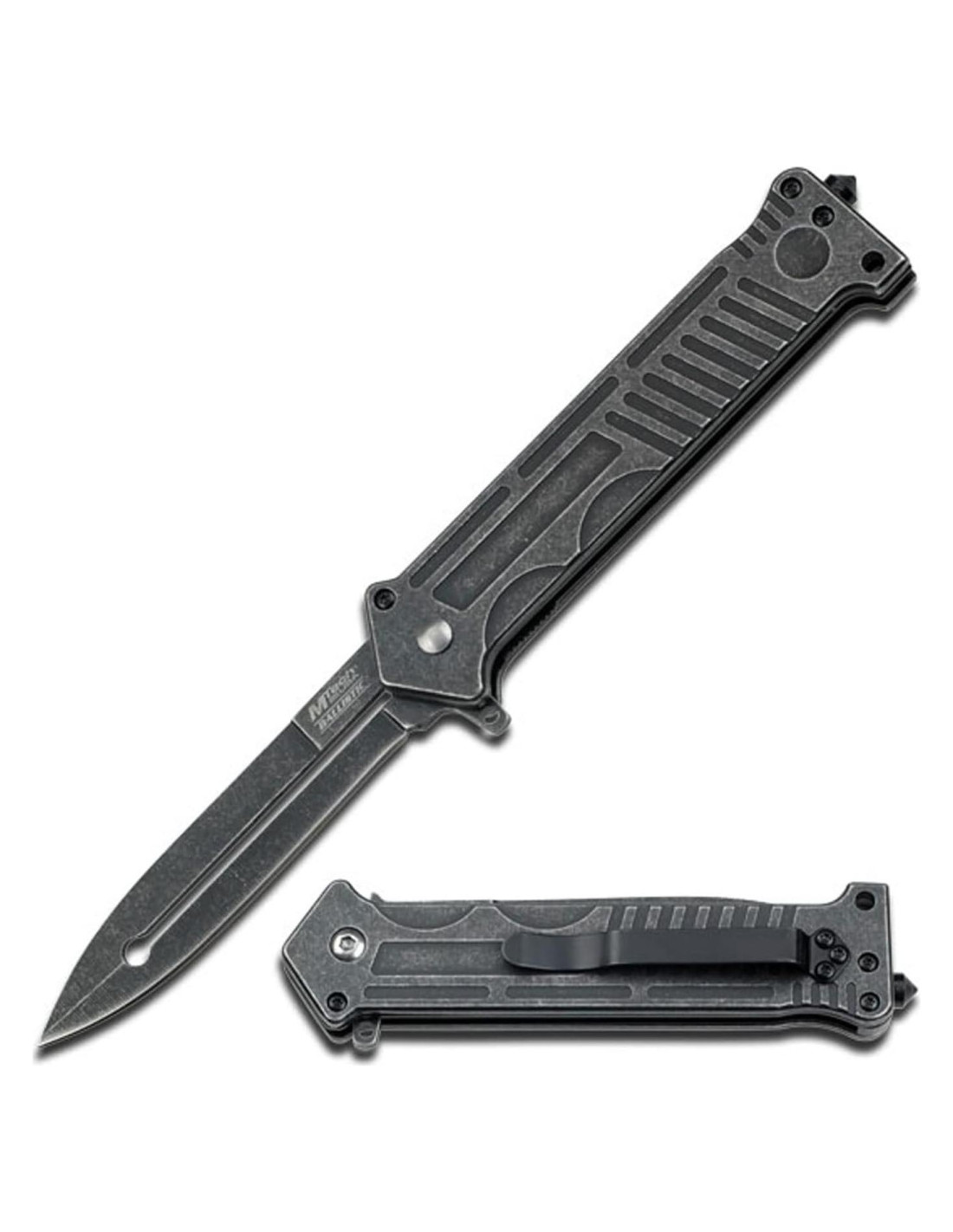 Midiendo 12.06 cm cerrado; este cuchillo de apertura asistida por resorte de MTech Ballistic ofrece un fácil despliegue con una mano. Una vez abierto, el cuchillo se bloquea de forma segura en su lugar con su bloqueo de liner. Este cuchillo cuenta con una hoja de acero inoxidable 440 de 8.26 cm con acabado stonewash. El mango de acero inoxidable con acabado stonewash tiene un rompevidrios en el extremo que puede ser muy útil en una situación de rescate. Este cuchillo viene completo con un clip para el bolsillo para un transporte fácil y seguro.