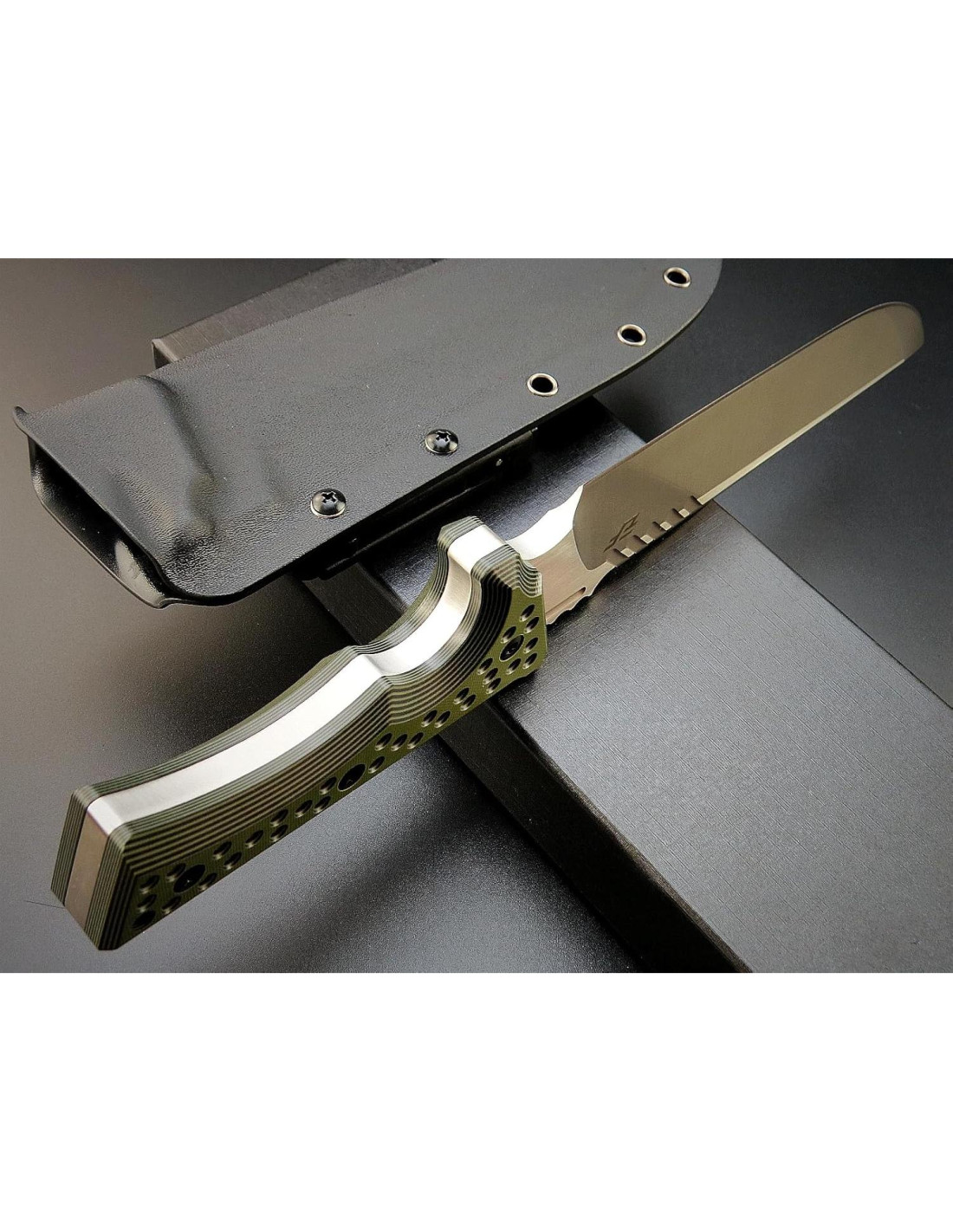 - Funda Kydex Exquisita: Funda segura de alta resistencia, ligera, resistente a altas temperaturas y a la corrosión, hecha de material Kydex importado para fácil portabilidad y uso diario. La funda es ajustada, sin ruidos, pero aún permite un despliegue rápido. Sujeta bien el cuchillo y tiene buena retención; la retención mantendría el cuchillo para un transporte vertical recto así como horizontal / estilo scout. Tiene un clip ajustable para adaptarse al ancho de su cinturón para un buen agarre ajustado.