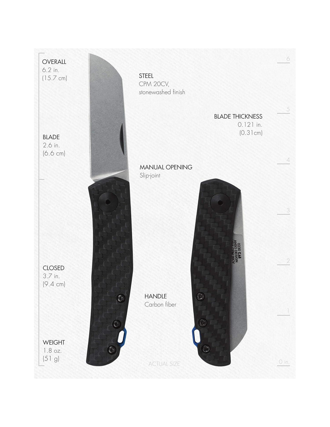 - Hoja sheepsfoot 20CV y mango de fibra de carbono ultraligero para una simplicidad