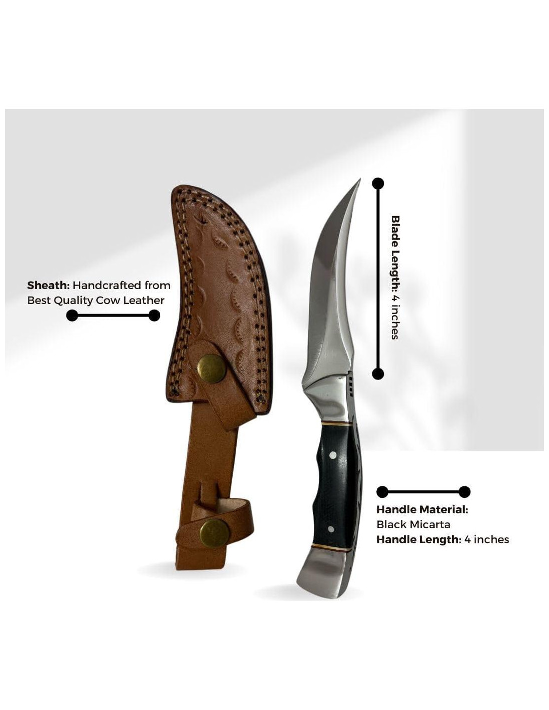 - Este cuchillo de caza cuenta con un filo ultra afilado diseñado para desollar y cortar con precisión. Ya sea que estés vistiendo un juego o preparando leña, su hoja expertamente afilada asegura cortes limpios y sin esfuerzo cada vez, convirtiéndolo en una herramienta confiable en cualquier escenario al aire libre.