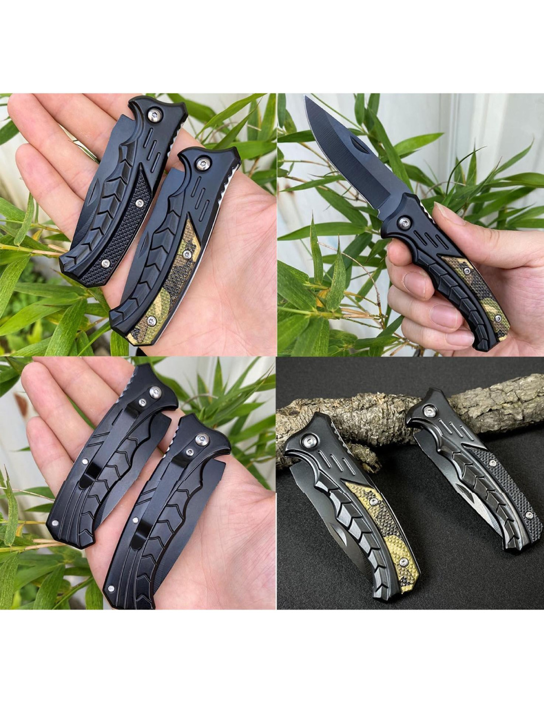 - USO AMPLIO: Este cuchillo portátil es pequeño y práctico, conveniente para desempacar y empacar, adecuado para acampar, viajar, hacer senderismo, etc. Es un buen ayudante esencial en la vida diaria