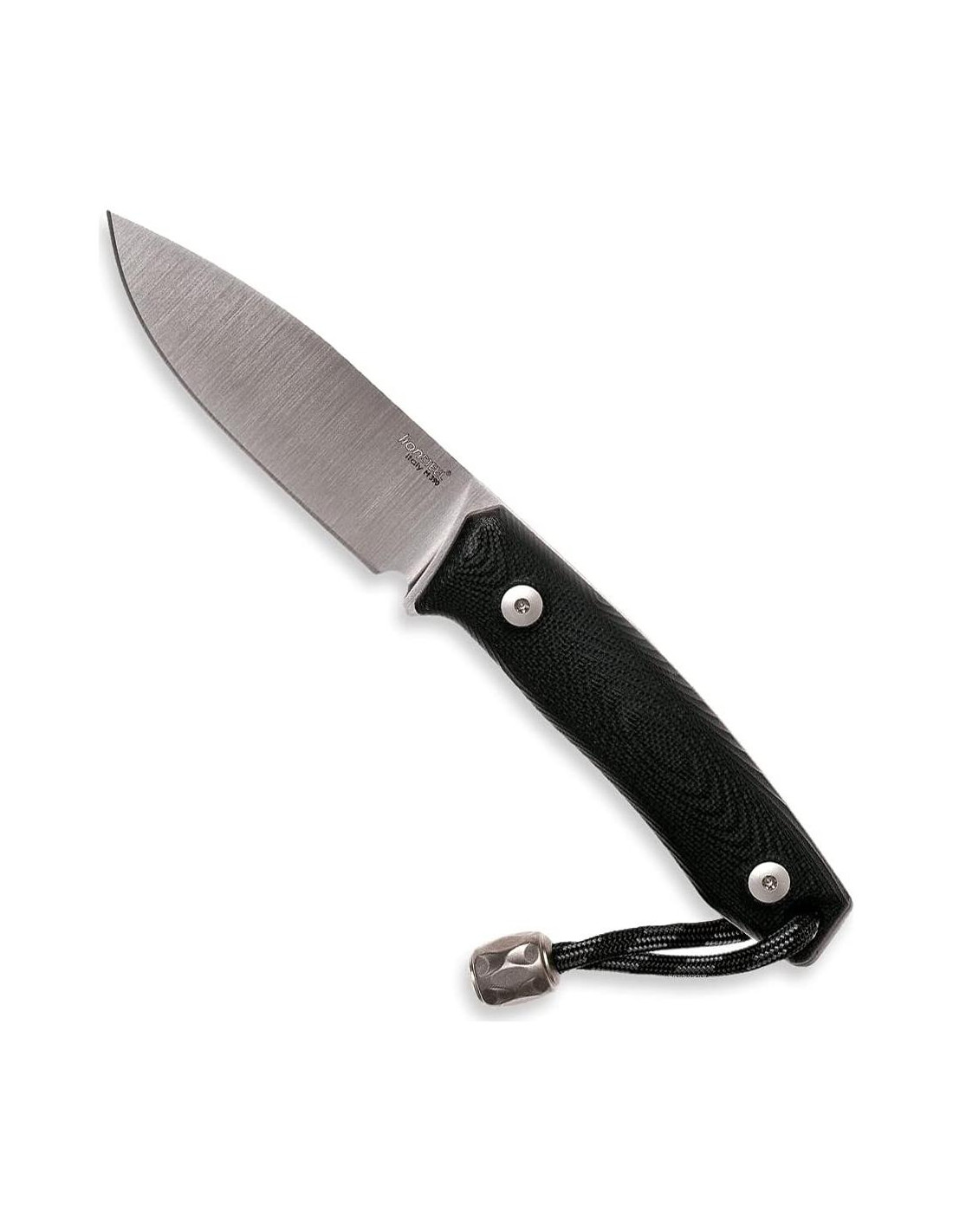 - Hoja Bohler M390 de 2.75 pulgadas (6.99 cm) de grosor completo, punta caída, acabado satinado, borde liso. Las dimensiones limitadas del M1 lo hacen ideal para bushcrafting y uso diario.