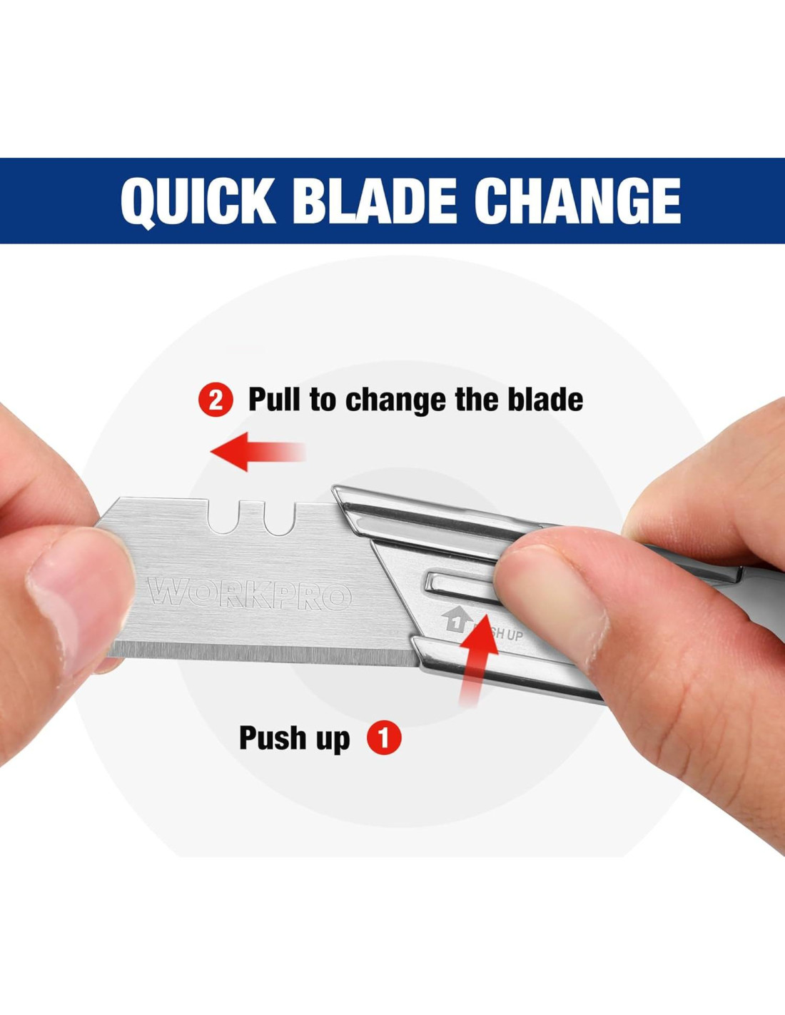 - Mecanismo de Cambio Rápido de Cuchilla. Para cambiar cuchillas, puedes cambiar rápidamente la cuchilla solo con tus manos, sin necesidad de un destornillador ni ninguna otra herramienta para desensamblar. Un gran plus es que acepta todas las cuchillas estándar o de grado profesional.