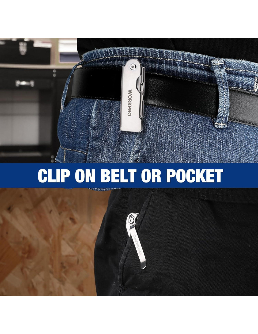 - Compacto para Fácil Transporte. El clip para el bolsillo está diseñado para mantener el cuchillo utilitario plegable en tu bolsillo y evita eficazmente que el mecanismo se desplace, lo que hace que el clip gire. Y son mucho más ligeros que la mayoría de los cuchillos, solo 1.66 oz (47 g). Es extremadamente pequeño, solo 3 pulgadas (7.62 cm) de largo cuando está cerrado. Así que se ajusta perfectamente en un pequeño bolsillo de pantalones o ropa y parece casi invisible mientras está en un bolsillo.