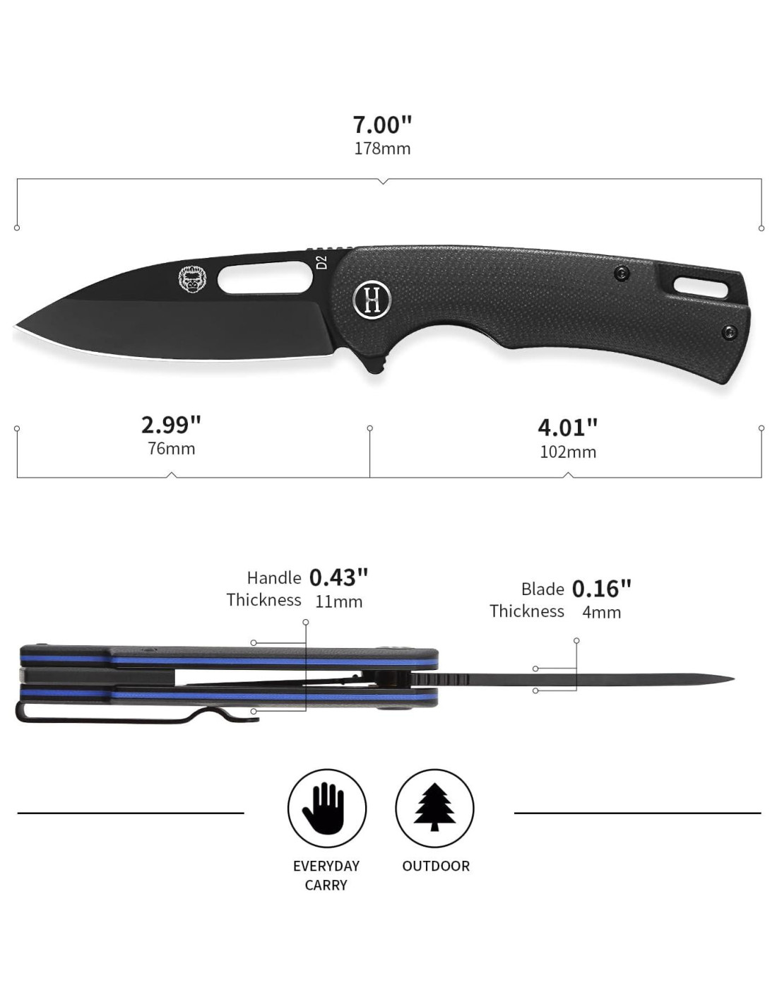 - MANGO ERGONÓMICO - El cuchillo de bolsillo G10 fue diseñado para un control máximo y un agarre antideslizante, lo que significa que nunca tendrás que temer perder el control.