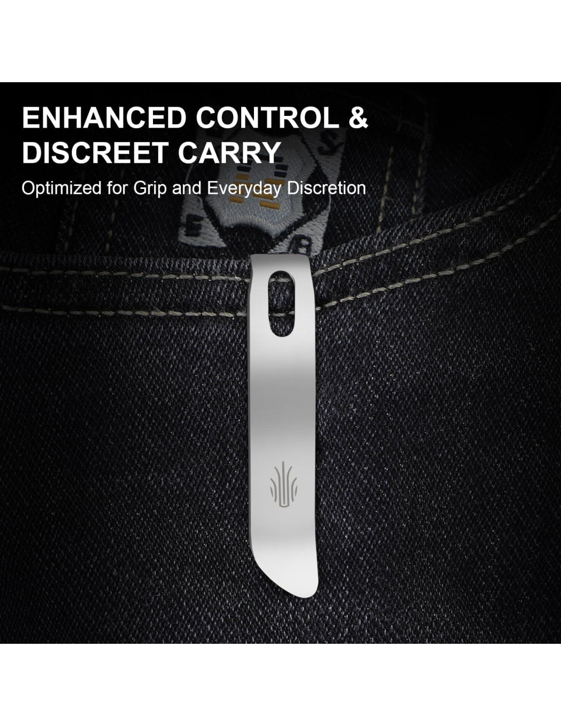 - Control Mejorado, Transporte Discreto: Las ranuras de agarre de doble cara mejoran la estabilidad, manteniendo un agarre seguro incluso con palmas sudorosas, mientras que reducen el peso para mejorar el equilibrio y el control; El clip profundo del cuchillo de supervivencia proporciona un transporte seguro y de bajo perfil, perfecto para uso diario oculto