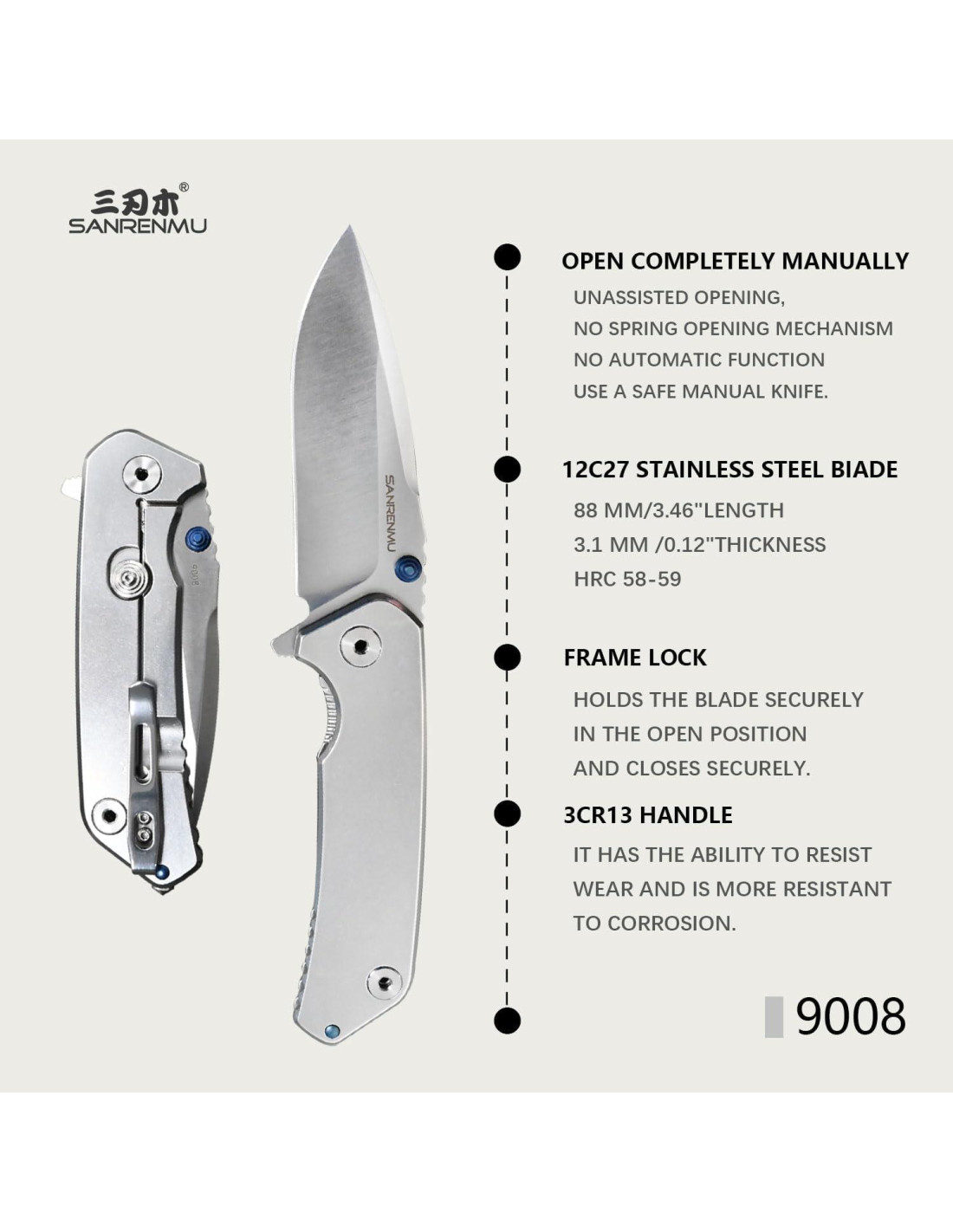 - Material de la hoja 12c27: Con un excelente rendimiento de la hoja, hace que la hoja sea afilada, alta dureza, excelente tenacidad, tiene buena resistencia a la corrosión. El rango de dureza es 58+/-Hrc, alta tenacidad, excelente afilado y tiene buena resistencia a la corrosión.
