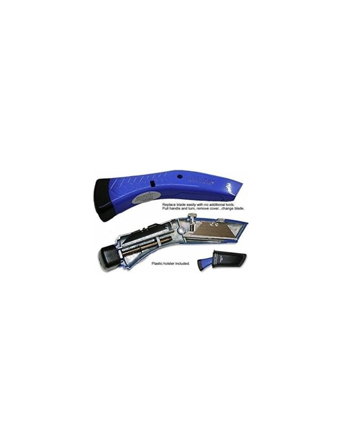 El cuchillo utility de cambio rápido Lutz #357 está disponible en amarillo de alta visibilidad o azul. Tiene una funda especialmente diseñada para un uso fácil. Es un cuchillo utility retráctil de servicio pesado diseñado para un uso confiable y cómodo. Excelente para alfombra y tejas debido a su calidad premium de servicio pesado. Tiene 3 hojas de repuesto de servicio pesado almacenadas dentro del cuchillo. La superposición de la nariz de seguridad en la parte superior e inferior del cuchillo es una característica clave de seguridad, por lo que la hoja no se romperá ni se saldrá o retrocederá sobre el usuario. El portahojas tiene múltiples postes elevados para asegurar las hojas. Los cuchillos utility retráctiles de servicio pesado Lutz están diseñados para ser confiables. Fundidos a presión de zinc para una óptima resistencia y durabilidad, están construidos para durar toda la vida.