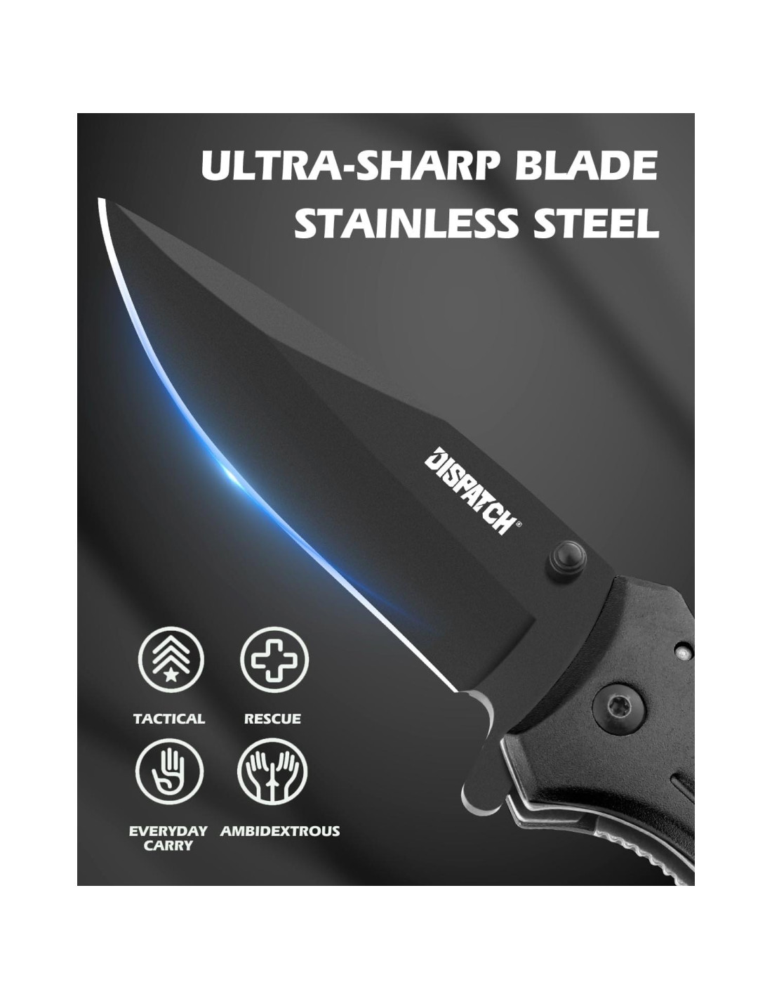 - MULTIFUNCIONAL: Ya sea acampando al aire libre, caminando, trabajando o como cuchillo de rescate en el automóvil, el cuchillo de supervivencia DISPATCH es tu compañero ideal para todas las actividades y situaciones. Un regalo perfecto para quienes son entusiastas de los cuchillos