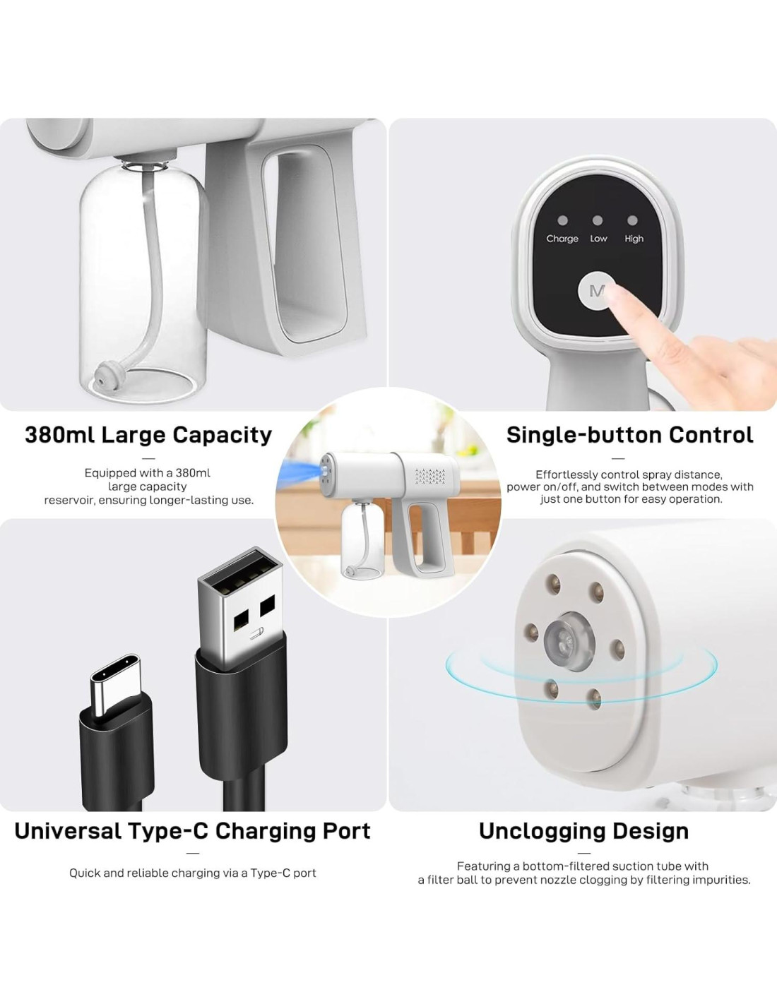 - [Recargable por USB] Botella de agua de gran capacidad de 380ml, partículas atomizadas superfinas. Adecuado para la mayoría de líquidos. Además, este pulverizador es altamente portátil y se puede usar en cualquier lugar que necesites.
