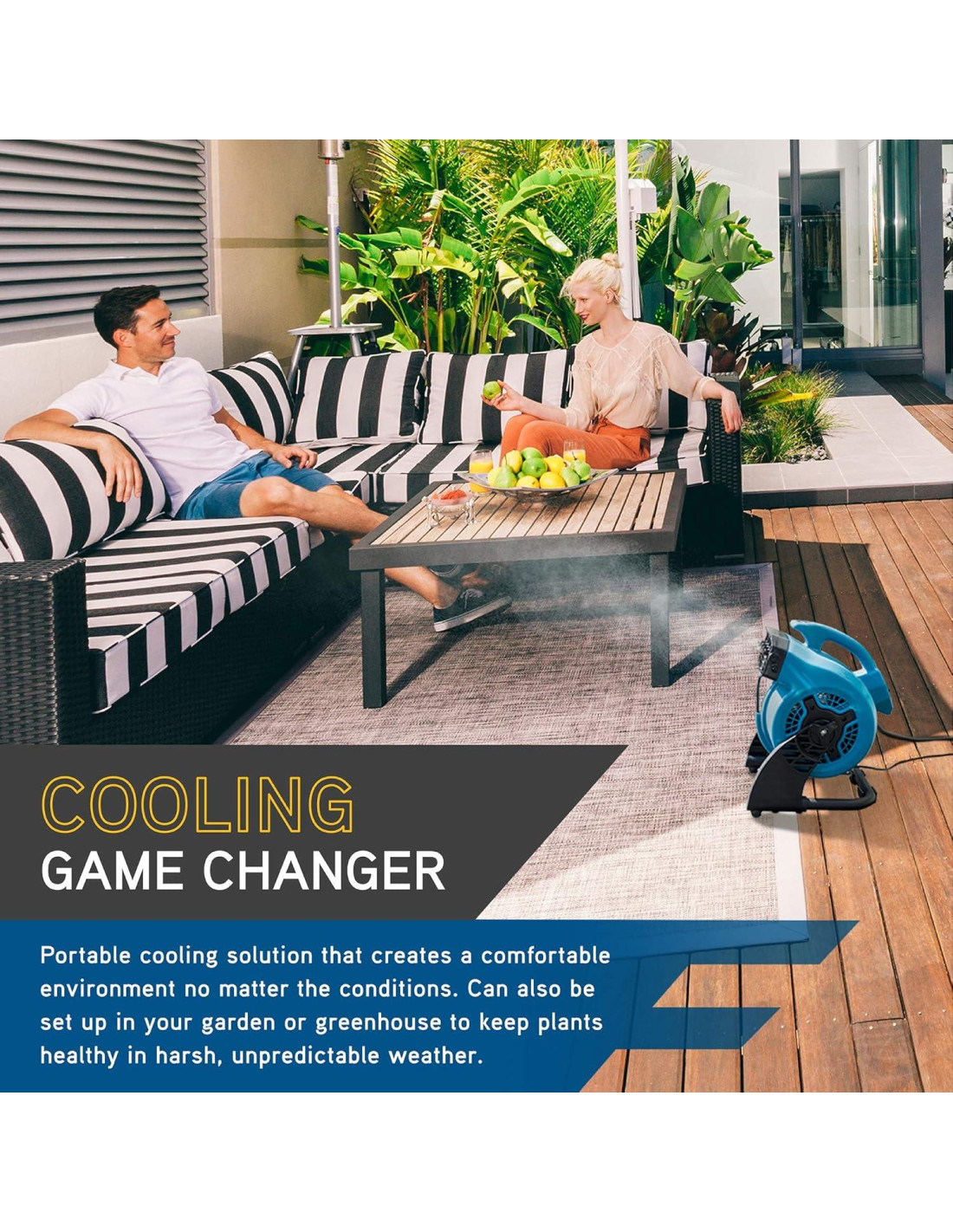 - MULTIFUNCIONAL - Úsalo en exteriores para nebulización o en interiores sin la función de nebulización como un circulador de aire para enfriamiento y ventilación.