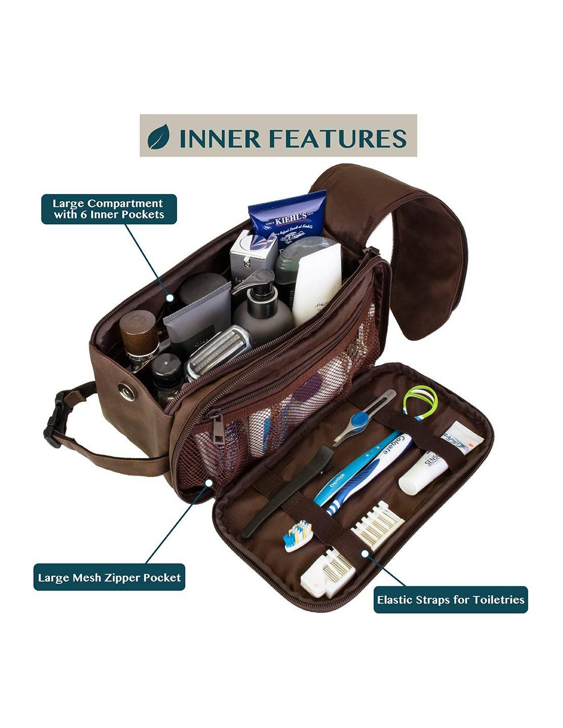 - NECESER PARA HOMBRES: Esta funcional bolsa de aseo de cuero PU tiene un gran compartimento y bolsillos laterales con bolsillos adicionales para guardar todos tus artículos de aseo, afeitado y cuidado personal. Equipado con bandas elásticas y bolsillos de malla adicionales para mantener tus artículos de higiene seguros mientras viajas o en casa, este estuche de maquillaje cosmético te ayudará a mantenerte organizado.
