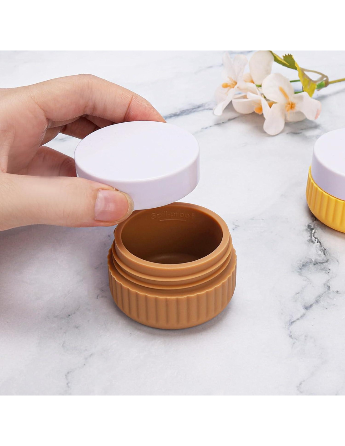 - Juego de Artículos de Tocador de Viaje: Incluye 4 botellas de silicona exprimibles (3 oz / 90 ml), 4 tarros de silicona (1 oz / 30 ml), 4 espátulas de plástico, 1 cepillo de limpieza, 1 embudo y una bolsa de maquillaje transparente