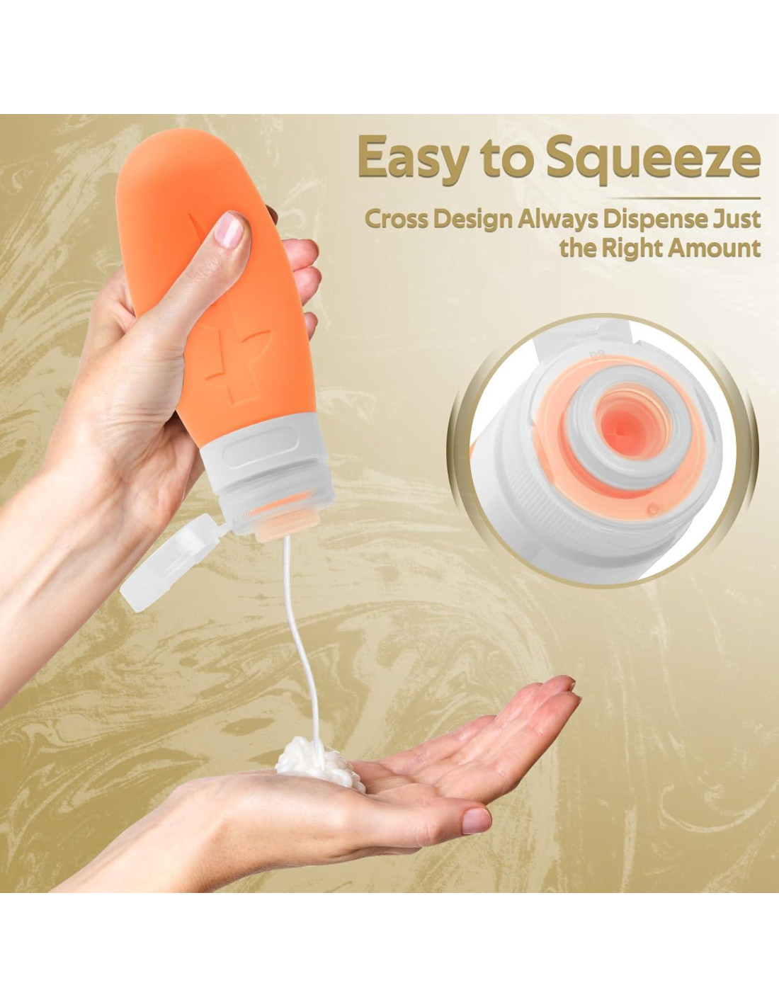 - Calidad Confiable: Nuestras botellas de artículos de tocador para viaje están hechas de silicona de grado alimenticio que es libre de BPA, no tóxica, inodora, ligera, impermeable, suave, exprimible, reutilizable y recargable, asegurando que el líquido no se contamine. Puedes llenar y reutilizar estas botellas de tamaño de viaje con confianza sin preocuparte de que no sean seguras.