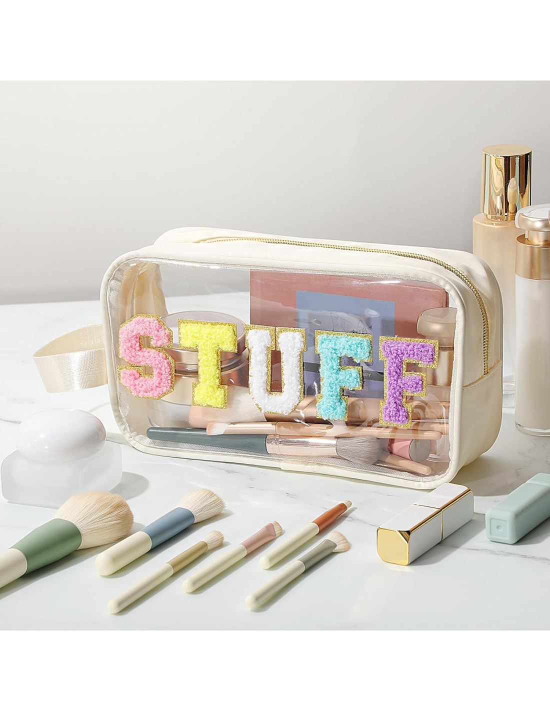 - Diseño de Letra Chenille Duradera: esta bolsa de protector solar para la playa cuenta con parches de letras chenille cosidos profesionalmente como "STUFF", elaborados con bordado de toalla y telas no tejidas; Cada letra tiene un borde brillante, asegurando que se mantenga vibrante y llamativa sin caerse, haciéndola agradable para viajar y uso diario