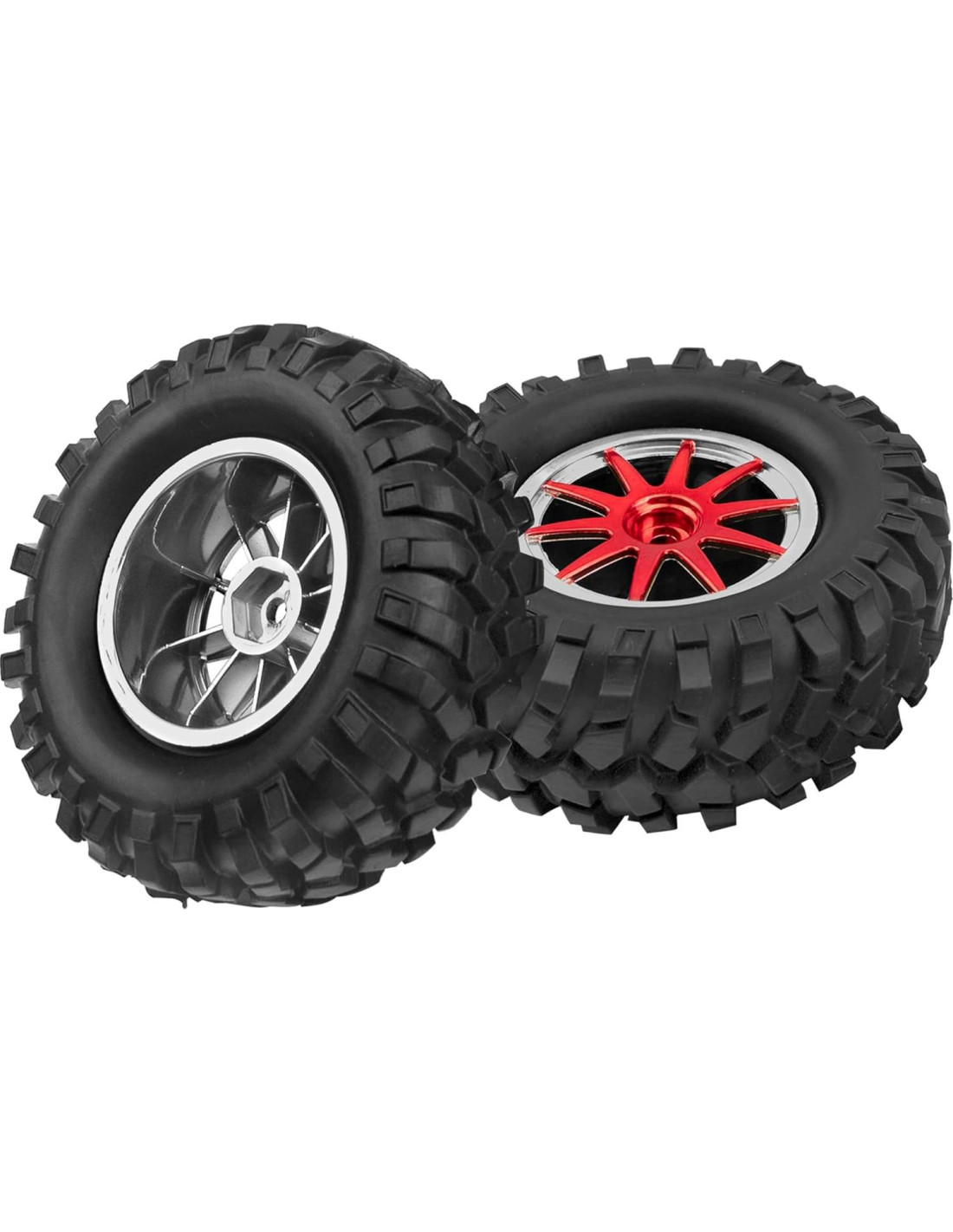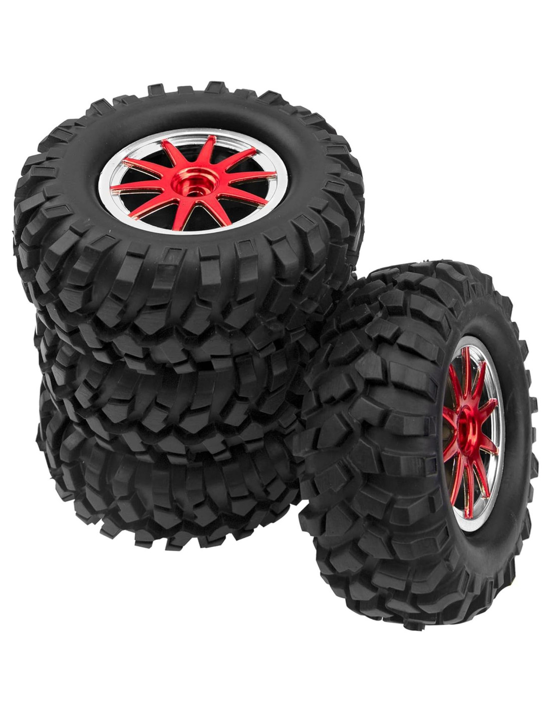 - 4. Material: Neumáticos de goma suave y inserts de espuma, llantas de plástico de 10 radios. El patrón de la banda de rodadura está diseñado para escalar, le da a su coche RC mejor agarre.