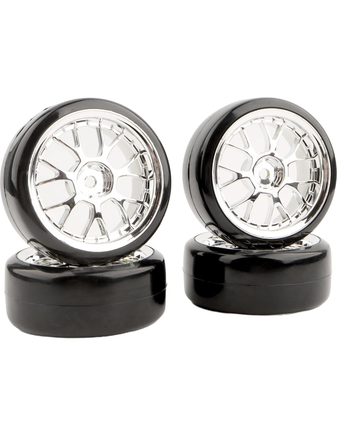 Ajuste Perfecto para Modelos 1/10 1/14 1/16 1/18 Neumáticos de Plástico Duro para Autos RC 1/10 - ¡Domina Cada Terreno, Domina la Carrera! Diseñado para ser compatible con la mayoría de los autos de turismo 1/10 y corredores en carretera. Ideal como piezas de repuesto o para mejorar el rendimiento. También compatible con Buggy RC 1/14 1/18, por ejemplo, será compatible con Traxxas 1/16 Slash WLtoys 1/14 144001 MJX Hyper GO 1/14 14301 14302 14303 WLtoys 1/18 A959 Traxxas 1/18 Latrax Teton HBX 1/18 18859 Buggy RC. También se adapta a algunos camiones de curso corto que tienen un cubo hexagonal de 12 mm, por favor verifique el tamaño del cubo de la llanta antes de comprar. Características Clave: Superficie Suave Velocidad: Transición sin problemas a pavimentos planos o pistas interiores, donde la banda de rodadura de baja fricción ofrece aceleración relámpago y control preciso. Derrapa como un Profesional: Diseñado para curvas agresivas, el diseño rígido de la rueda permite un derrape sin esfuerzo, permitiéndote deslizarte alrededor de las curvas con precisión emocionante. ¿Qué Incluye? 4x Neumáticos de Plástico Duro: Neumáticos de alta adherencia, listos para derrapar, diseñados para autos de carreras en carretera a escala 1/10. Perfectos para asfalto, pistas suaves o derrapes controlados. 4x Tuercas de Rueda: Asegura tus ruedas sin esfuerzo con tuercas resistentes a la corrosión diseñadas para soportar el estrés a alta velocidad. 1x Llave: Herramienta ligera y ergonómica para cambios rápidos y fáciles de neumáticos, ¡sin herramientas adicionales necesarias! (Nota: El neumático no está pegado en la llanta. Está montado en la llanta) Características: Material del Neumático: Plástico Material de la Llanta: Plástico Diámetro Exterior de los Neumáticos: 2.45" (62mm) Ancho: 1.02" (26mm) Cubo Hexagonal de 12mm (no incluido) Color: Plata Caso de Uso: Reemplazo, mejoras o repuestos Nunca Te Pierdas una Vuelta - ¡Equípate con Piezas de Grado Profesional!