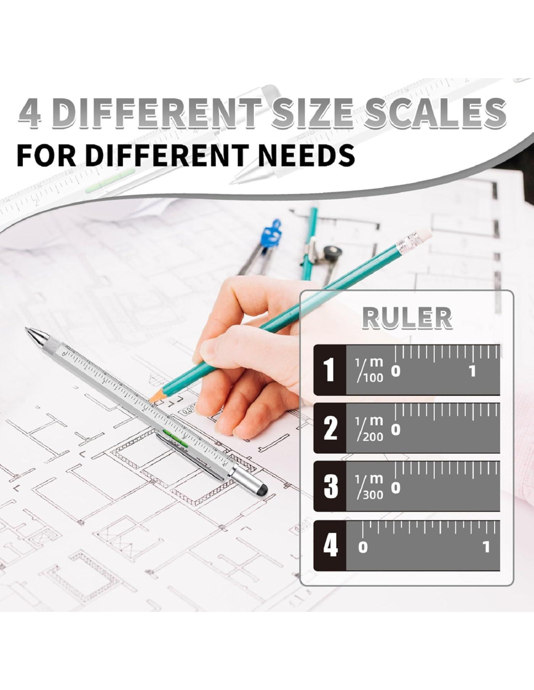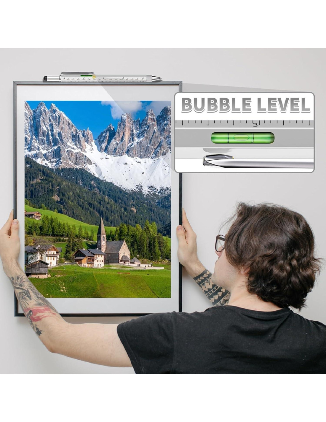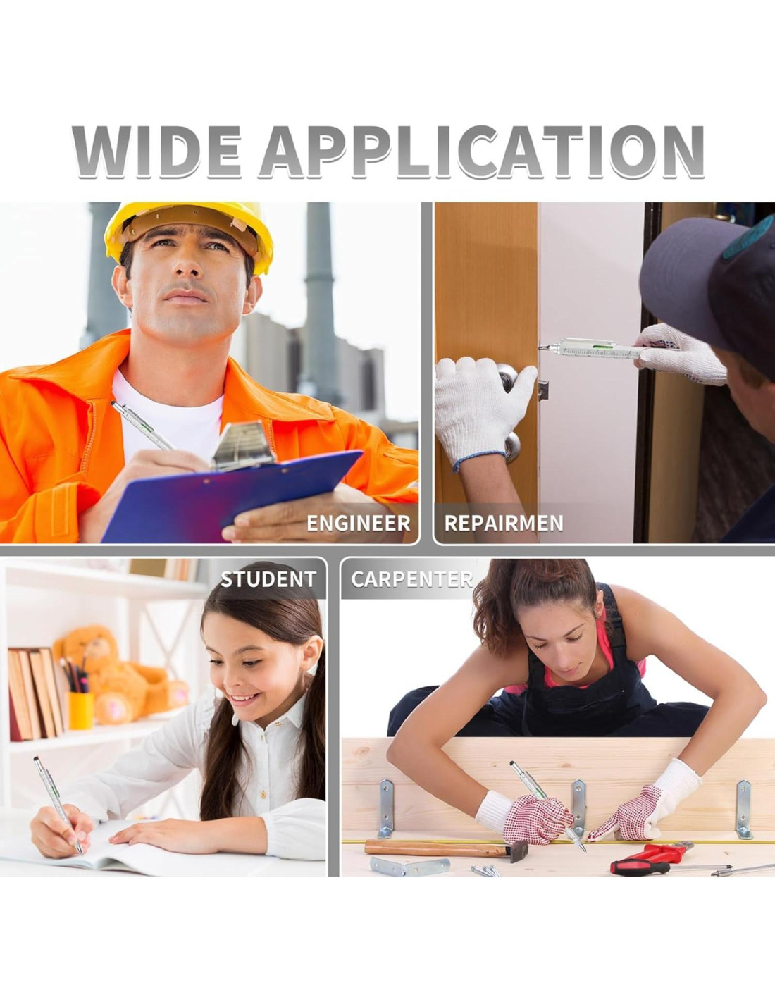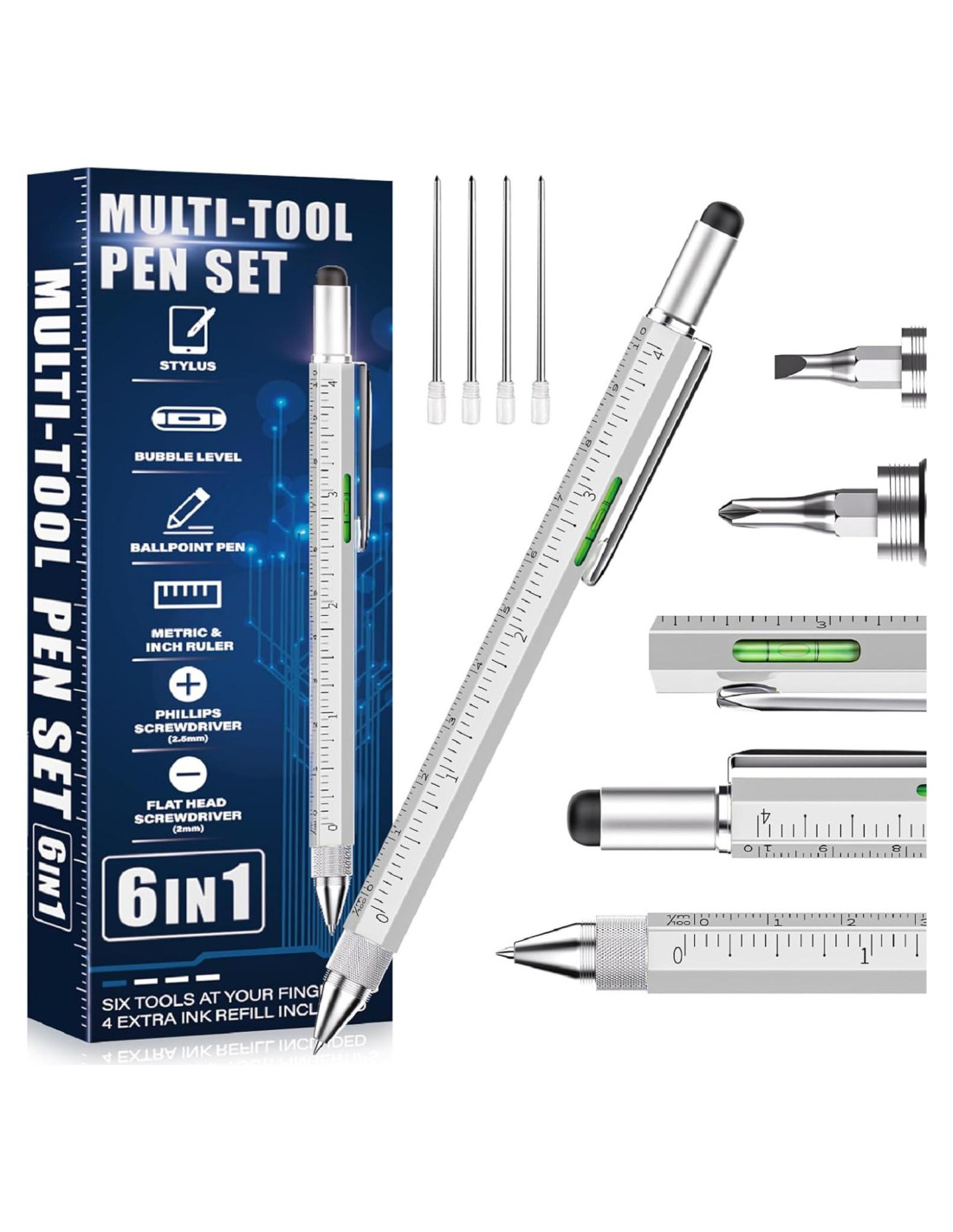 Gadgets Geniales para Hombres En nuestra vida cotidiana, a menudo nos encontramos en la necesidad repentina de una herramienta para arreglar algo, pero luchamos por localizar una. Este bolígrafo multiherramienta portátil y conveniente viene al rescate, satisfaciendo tus necesidades de manera oportuna. Este bolígrafo multiherramienta novedoso e intrigante es una excelente opción de regalo para el Día del Padre, rellenos de calcetines de Navidad para hombres, adultos y adolescentes, así como regalos del Día de San Valentín para esposos y novios. Los hombres que disfrutan de las manualidades se llenarán de alegría al recibir este regalo. Perfecto para: regalos del Día del Padre regalos de Navidad regalos de cumpleaños regalos de agradecimiento regalos del Día de San Valentín Funciones del Bolígrafo 6 en 1 Bolígrafo Estilógrafo Luz LED Nivel de burbuja Bolígrafo Regla Métrica y de Pulgadas Destornillador Phillips y de Cabeza Plana Bolígrafo Con la función de bolígrafo, ya no necesitas llevar un bolígrafo separado junto con tus herramientas. Elimina la molestia de buscar un bolígrafo cuando necesitas anotar notas o firmar documentos mientras trabajas con las otras herramientas. Destornillador Phillips y de Cabeza Plana Con su flexibilidad y fácil cambio entre los destornilladores de dos en uno, ya no necesitas preocuparte por elegir y llevar múltiples herramientas al reparar objetos. Regla (Métrica y de Pulgadas) Esta herramienta versátil ofrece dos tipos de unidades de medida de longitud, métrica e imperial, atendiendo diferentes necesidades para dibujar y medir longitudes de línea en el día a día. Nivel de Burbuja Equipado con un nivel de burbuja, esta herramienta permite un nivelado preciso de objetos, siendo adecuada para ajustar la planitud y rectitud de marcos de fotos o componentes. Bolígrafo Estilógrafo La punta de goma de este bolígrafo estilógrafo cuenta con capacidad para pantallas táctiles, permitiendo un deslizamiento, selección, dibujo y escritura precisos en cualquier dispositivo de pantalla táctil.