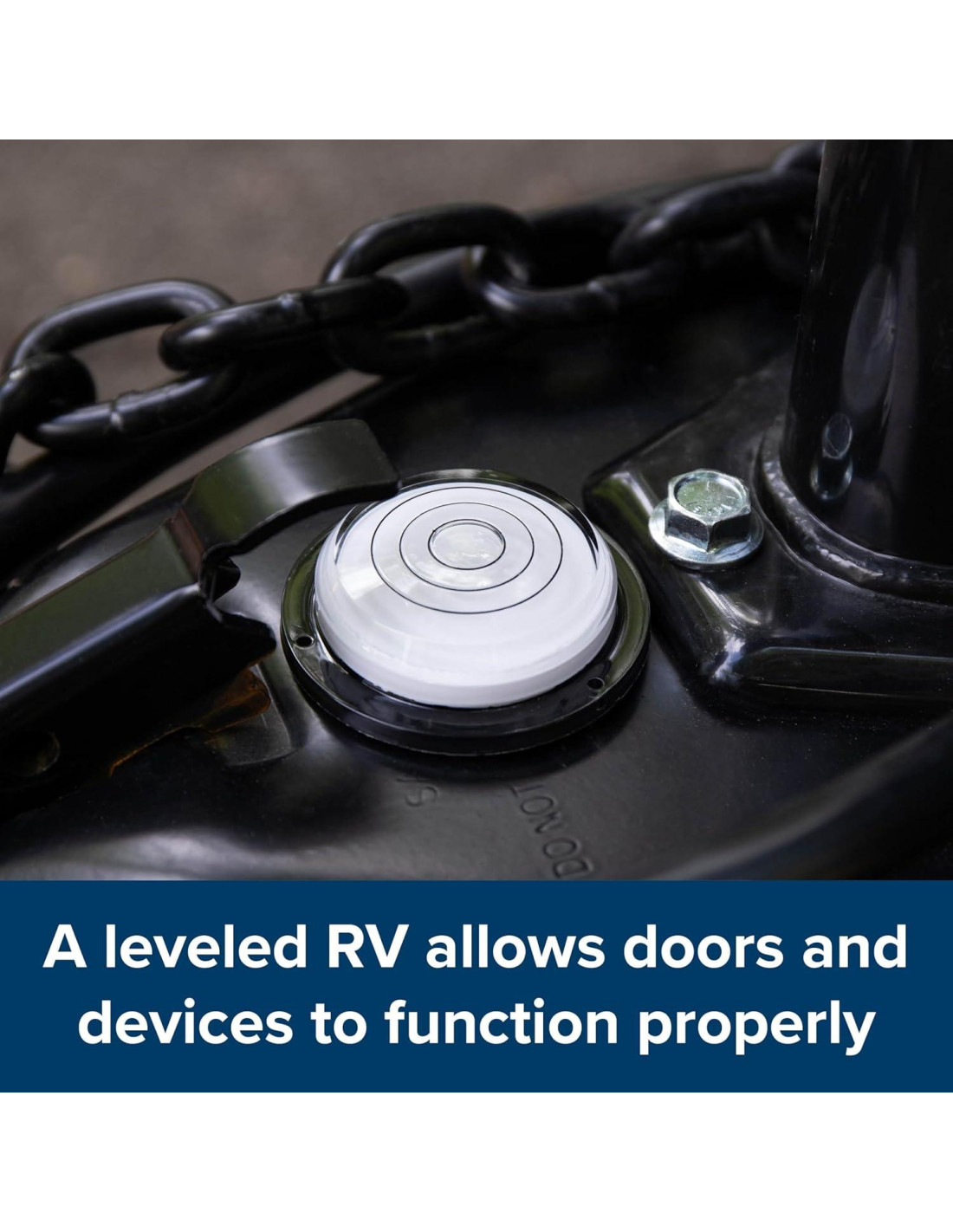 El nivel Bullseye para RV de Camco es un nivel redondo con cúpula que lee 360 a la vez.