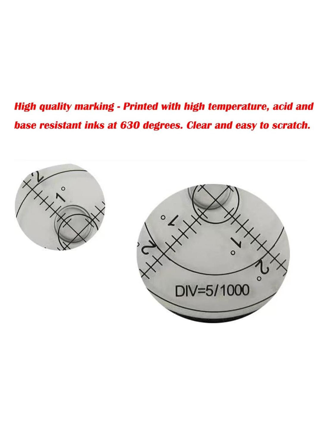Estos niveles burbuja son más duraderos que la mayoría de los viales de nivel OEM integrados en herramientas manuales, están hechos más gruesos y fuertes. El nivel burbuja se puede usar para bombas de calor, estufas, refrigeradores, impresoras 3D, marcos de fotos, manejadores de aire, lavadoras, equipos de fresado, equipos de refrigeración, casas rodantes y cualquier herramienta, ajustando tocadiscos, reproductores de discos. Especificaciones: - Peso: 65g (2.28 onzas) - Tamaño: 60mm*12mm (2.36 pulgadas*0.47 pulgadas) - Color: Verde Agua y Caja Negra - Material de la Caja: Aluminio+Vidrio - Precisión(Sensibilidad): 15'/2mm (0.25 grado/0.079 pulgadas) - Paquete Incluido: 1Pcs Nivel Burbuja Circular RV Método de Uso: Coloque el nivel de burbuja sobre la superficie que desea medir, la posición media de la burbuja dentro del nivel mostrará que la superficie está nivelada. El nivel de burbuja tiene una amplia aplicación disponible para todas las áreas de alta precisión, lo que hace que el ajuste sea más conveniente. El nivel de burbuja puede ser una medición profesional de diseño y uso normal.