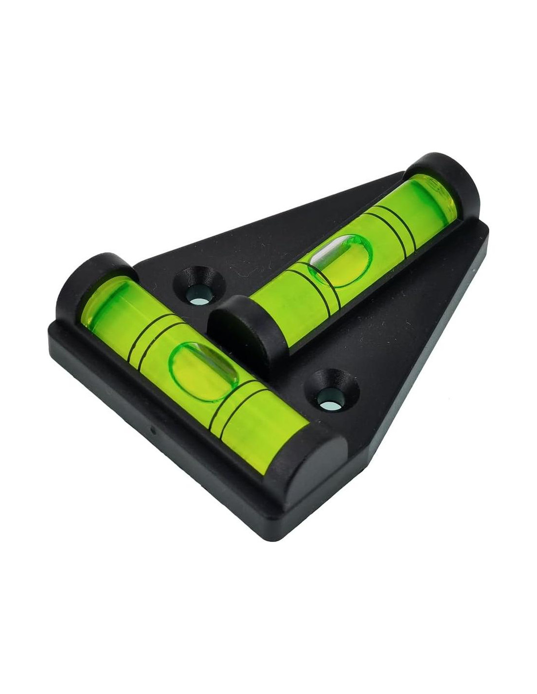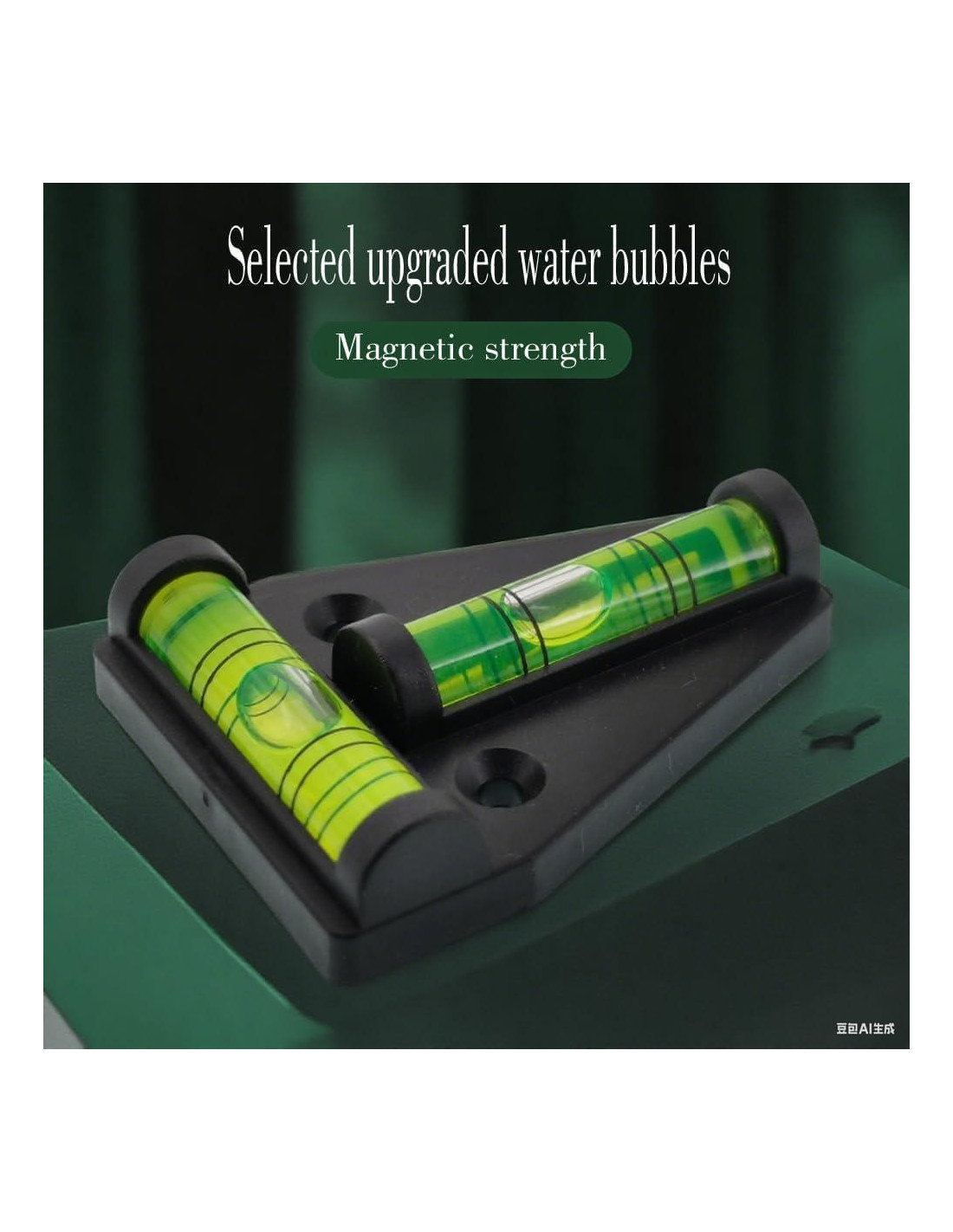 El nivel te permite verificar la precisión al girar el nivel para comparar con tus medidas marcadas. Estos pequeños niveles en forma de T pueden montarse permanentemente en un mostrador en tu casa rodante o en tus muebles / maquinaria para que siempre puedas verificar si sigue nivelado (Nota: al montar con tornillos, no aprietes demasiado para no deformar el cuerpo del nivel). Úsalo al colgar cuadros u otra decoración. Muy útil al nivelar tu casa rodante o artículos en tu casa rodante. Conéctalo al enganche o parachoques trasero de un remolque o caravana para verificar el nivel. Conéctalo a mesas de billar o mesas de ping pong para un juego nivelado preciso. Úsalo en herramientas de máquina asegurando el nivel al usar. El magnetismo puede ser absorbido en hierro, sin tornillos. Úsalo al nivelar telescopios o cámaras u otros dispositivos montados en trípode. Cada nivel tiene dos agujeros para tornillos para montaje y una parte trasera plana. Algunos prefieren usar cinta adhesiva de doble cara en la parte trasera. Cada nivel consta de 2 frascos llenos de líquido marcados para fácil lectura en un respaldo triangular de plástico. Los niveles pequeños son muy convenientes para mantener en tu bolsa de herramientas o en tu bolsa de viaje, ya que ocupan muy poco espacio y pesan muy poco. Se proporcionan los agujeros para atornillar a una superficie de forma permanente, pero algunos utilizan los agujeros para convertir estos en un nivel de línea de cuerda.