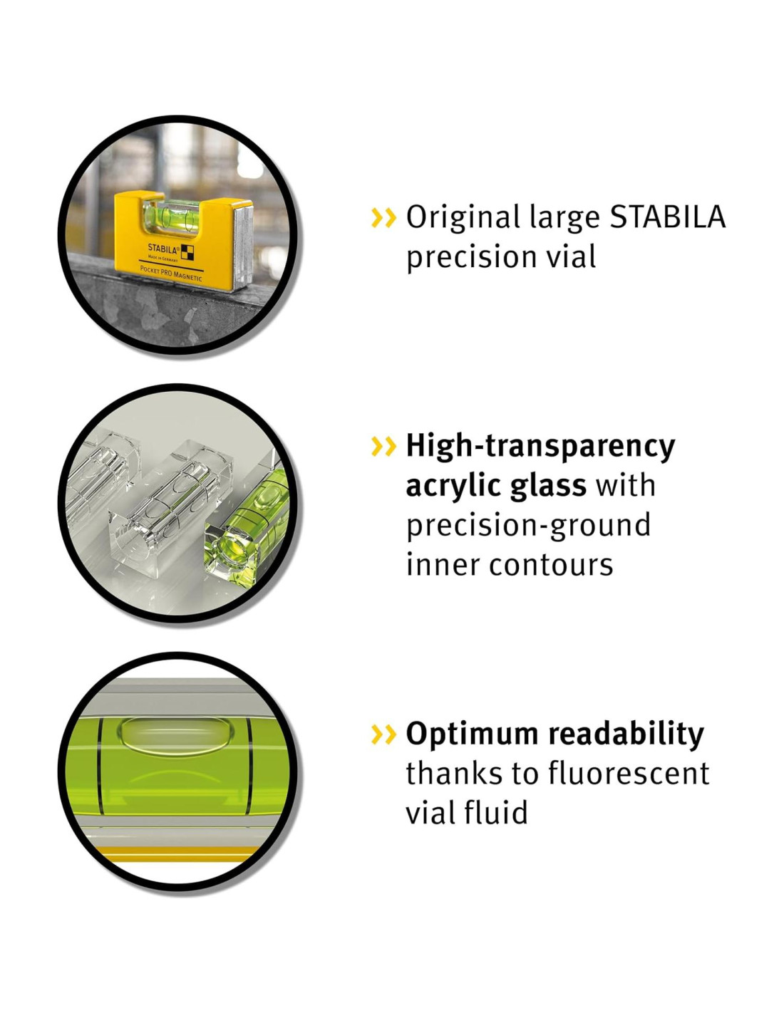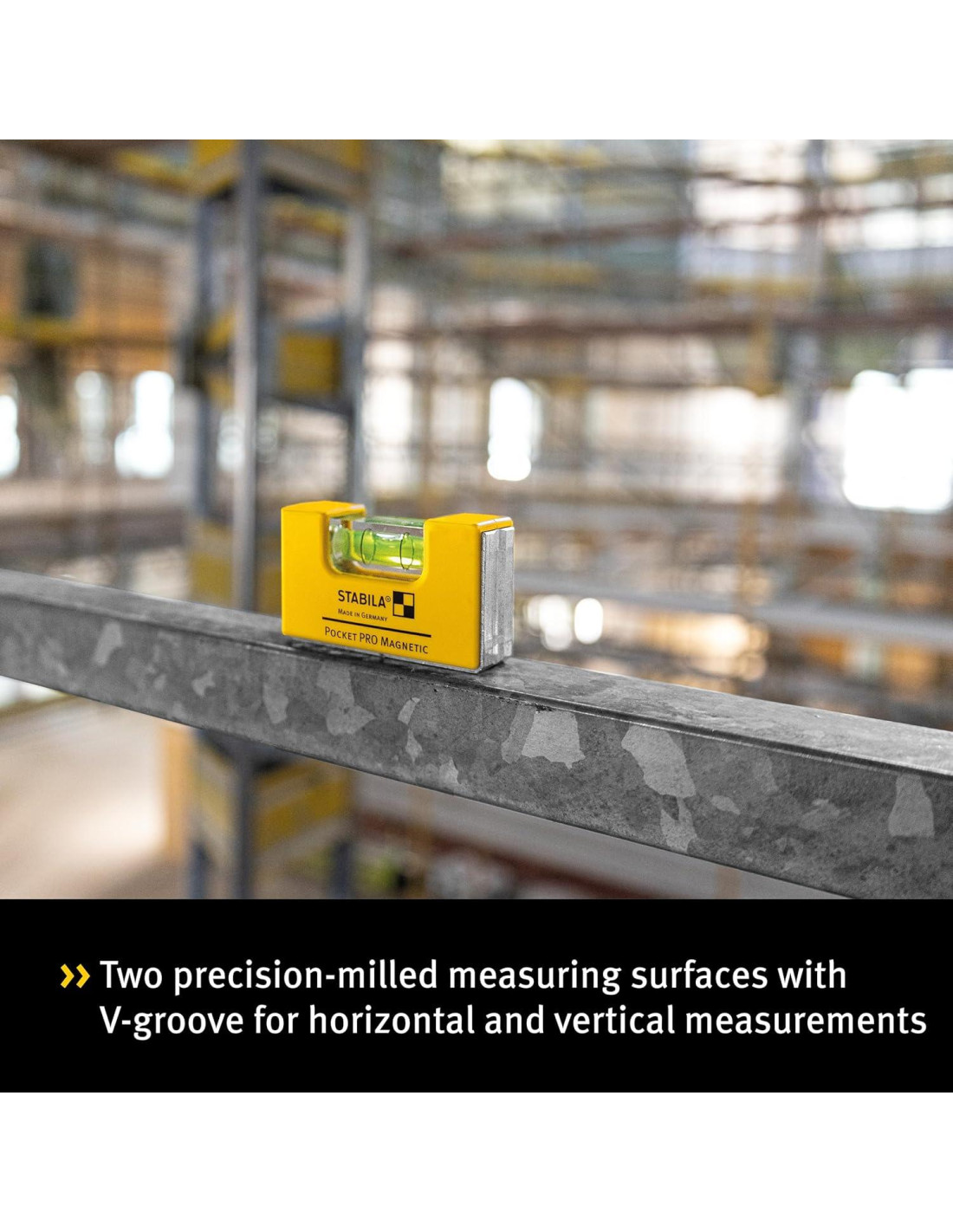 - PRECISO: Con el nivel STABILA original grande - precisión de medición en posición normal +/- 1.0 mm/m. Dos superficies de medición mecanizadas con precisión con canal en V para mediciones en superficies planas y redondas