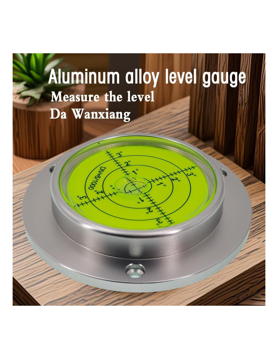 Diámetro: 90mm, altura: 16mm, peso: 163 gramos. Propósito: Medición y calibración horizontal. Medición más precisa de la base de aleación de aluminio con una precisión de 6' (2mm). Este producto tiene un diseño de orificio de instalación que se puede fijar con tornillos. Medición más precisa de la base de aleación de aluminio. Atención: ¡No almacenar ni usar en el compartimento del automóvil durante el clima de alta temperatura!