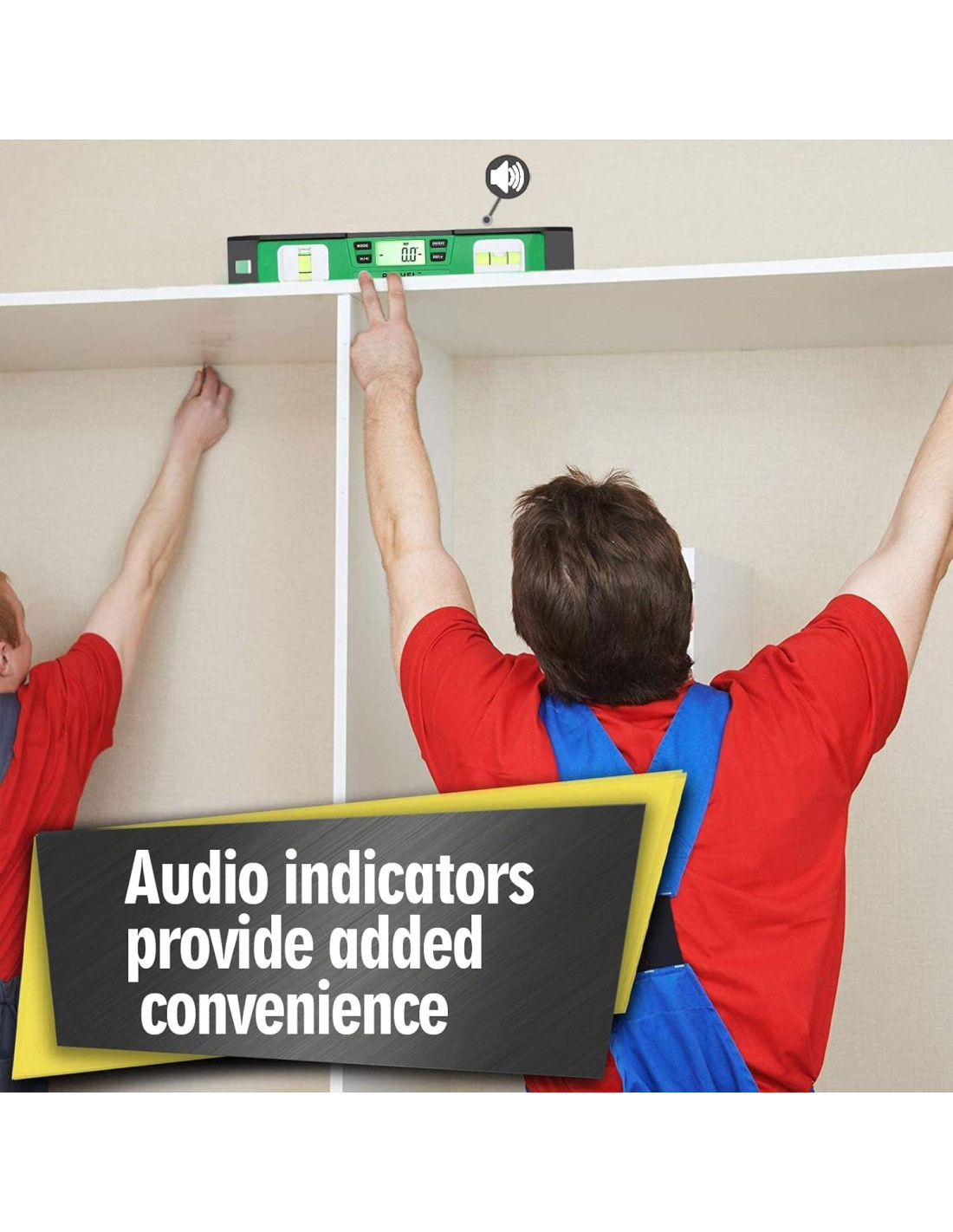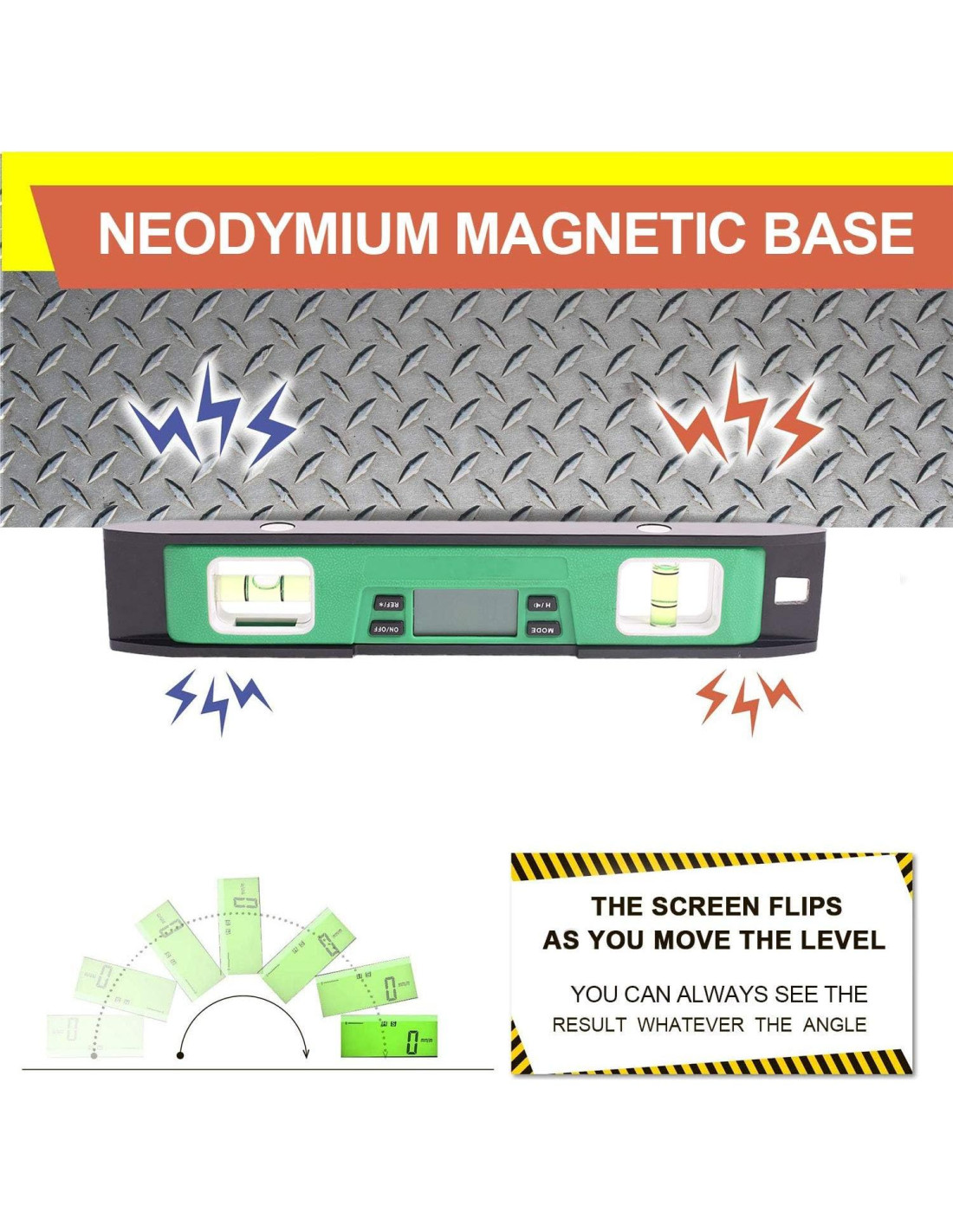 - FÁCIL DE LEER: Este Nivel Torpedo Digital con una gran pantalla LED brillante que se voltea, por lo que puedes leer fácilmente tus mediciones todo el día y la noche, incluso en los espacios más oscuros. Además, fabricamos nuestro nivel digital con funcionalidad de indicador de audio, puedes lograr nivel y 90 grados incluso con los ojos cerrados.