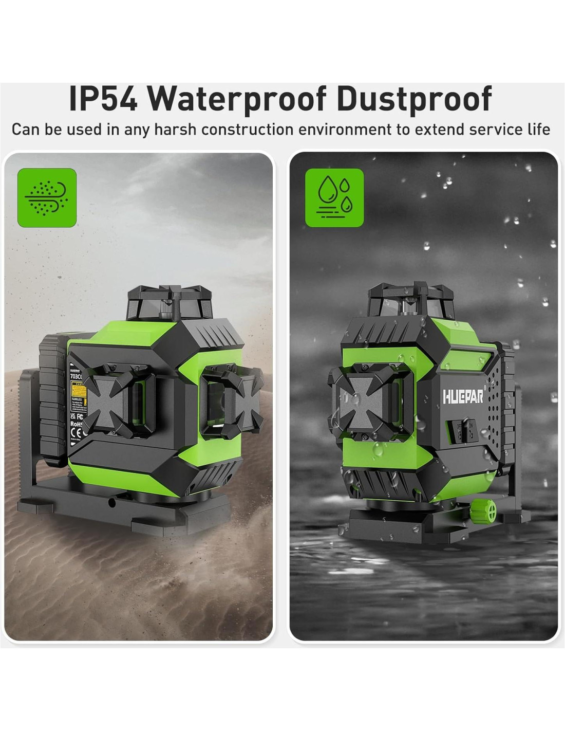 - [Protección avanzada y largo tiempo de trabajo] : Clase 2 (IEC/EN60825-1/2014), <1mW nivel de protección, IP54 (resistente a golpes, impermeable, a prueba de polvo, resistente al desgaste, resistente al frío y resistente a altas temperaturas). Equipado con una batería de litio de 3.7V / 6600mAh y proporcionando un tiempo de trabajo más largo, disfruta de un menor consumo de energía y una mayor vida útil de la batería.