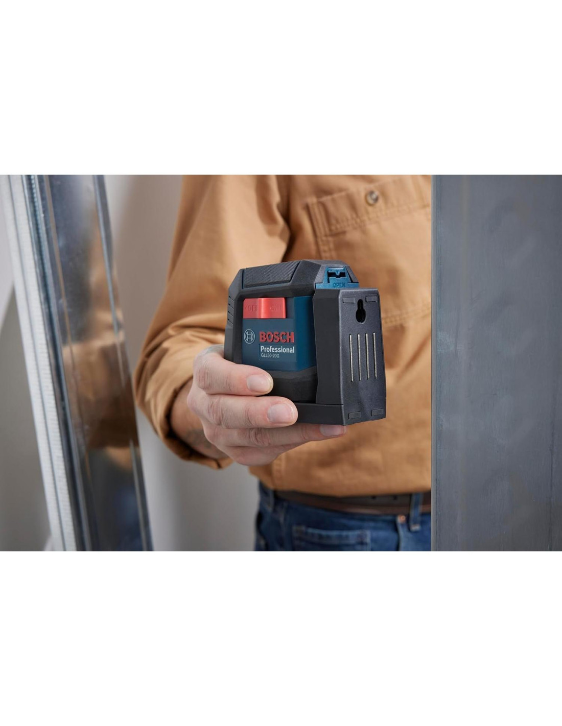 El láser de línea cruzada autocompensado Bosch GLL50-20G proyecta dos haces verdes nivelados y plomados que son hasta 4 veces más brillantes que los haces rojos estándar. Con un alcance de 65 pies (19,81 m) que permite nivelar con una precisión de 1/4 de pulgada (0,64 cm) a 30 pies (9,14 m), es un elemento imprescindible para cualquier caja de herramientas. Con su flexibilidad de energía, funciona con las baterías AA incluidas o se puede adquirir la batería de iones de litio Bosch de 3.7V 1.0 Ah (se vende por separado) que incluso se puede usar mientras se carga para disminuir el tiempo de inactividad. La tecnología VisiMax optimiza la visibilidad de la línea y el tiempo de funcionamiento para las condiciones de trabajo, maximizando aún más el uso. Su diseño ergonómico, compacto y ligero, junto con su clasificación de resistencia al agua y al polvo IP55, proporciona una operación cómoda y confiable. La carcasa de goma completa ayuda a proteger cada punto de impacto importante, actuando como una jaula de seguridad para salvaguardar la herramienta. Equipado con un sistema de péndulo inteligente, la herramienta se nivela automáticamente, indicará cualquier condición fuera de nivel parpadeando y luego se bloquea cuando se apaga para un transporte seguro. Simplemente incline el láser para usar las líneas en un ángulo con facilidad. Coloque la herramienta con el soporte magnético integrado incluido o utilice el soporte de rosca de 1/4 de pulgada (0,64 cm) que se adapta a trípodes de tamaño similar.