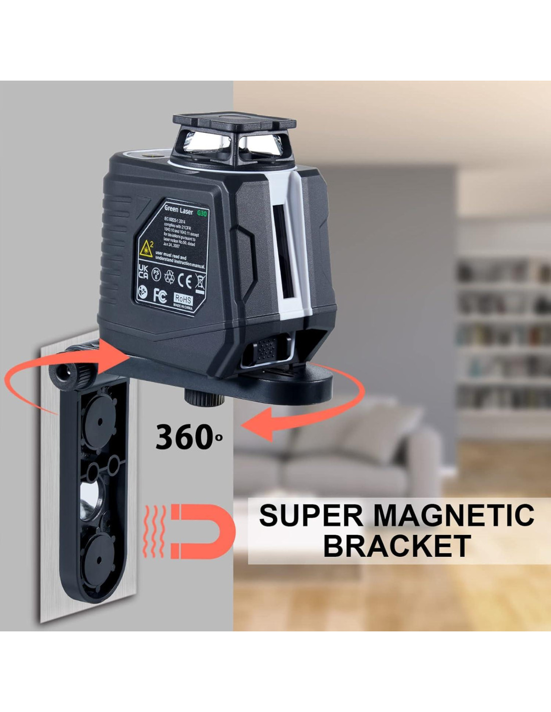 - Soporte magnético y diseño duradero: El fuerte soporte magnético en L incluido permite la fijación a superficies metálicas y girar el nivel láser a 360. La herramienta láser también ofrece roscas de montaje de 1/4"-20 para adaptarse a trípodes estándar o montajes de postes láser. Además, equipado con un agarre suave, diseño ligero y del tamaño de la palma, fácil de transportar y resistencia al agua/polvo IP54