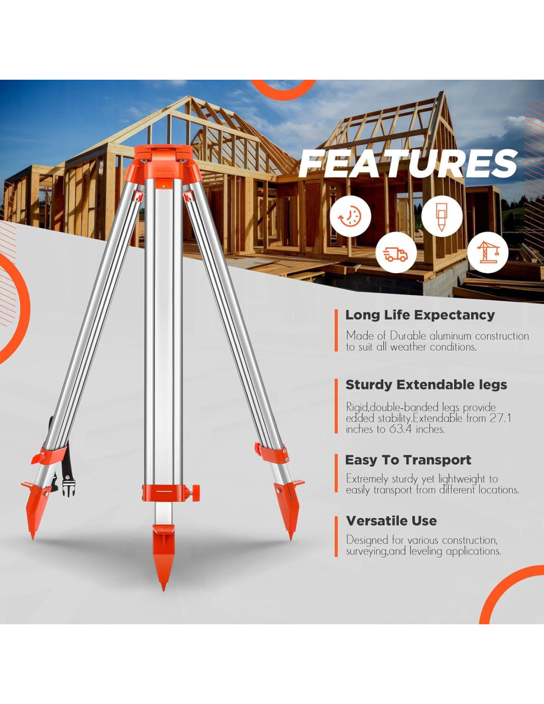 - Estabilidad Confiable: equipado con un diseño de pierna de doble banda, este trípode de encuesta de aluminio asegura una estabilidad inigualable, se puede aplicar en combinación con un láser de nivelación para una mejor lectura y guía en el sitio de construcción, es adecuado para medir, nivelar, instalación de gabinetes, colocación de paneles de yeso, excavación de sitios, enmarcado y otros proyectos