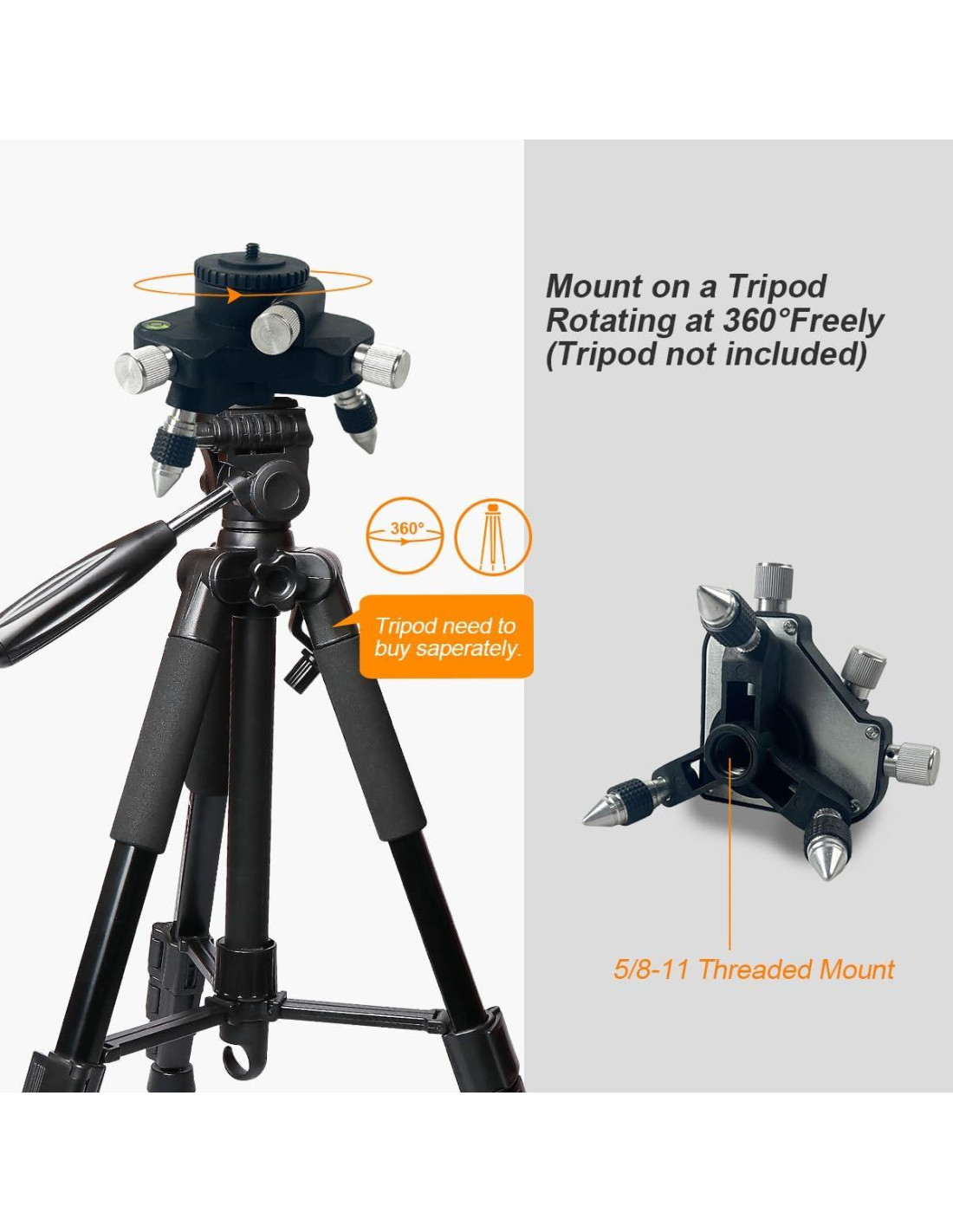 - ROSCAS MACHO DE 1/4 DE PULGADA Y MONTAJE ROSCADO DE 5/8 DE PULGADA: La rosca macho de 1/4 de pulgada es adecuada para cualquier tipo de herramienta que venga con un tamaño de montaje de 1/4 de pulgada. Y el montaje roscado de 5/8 de pulgada hace posible que se adjunte a un trípode u otra herramienta para su uso.