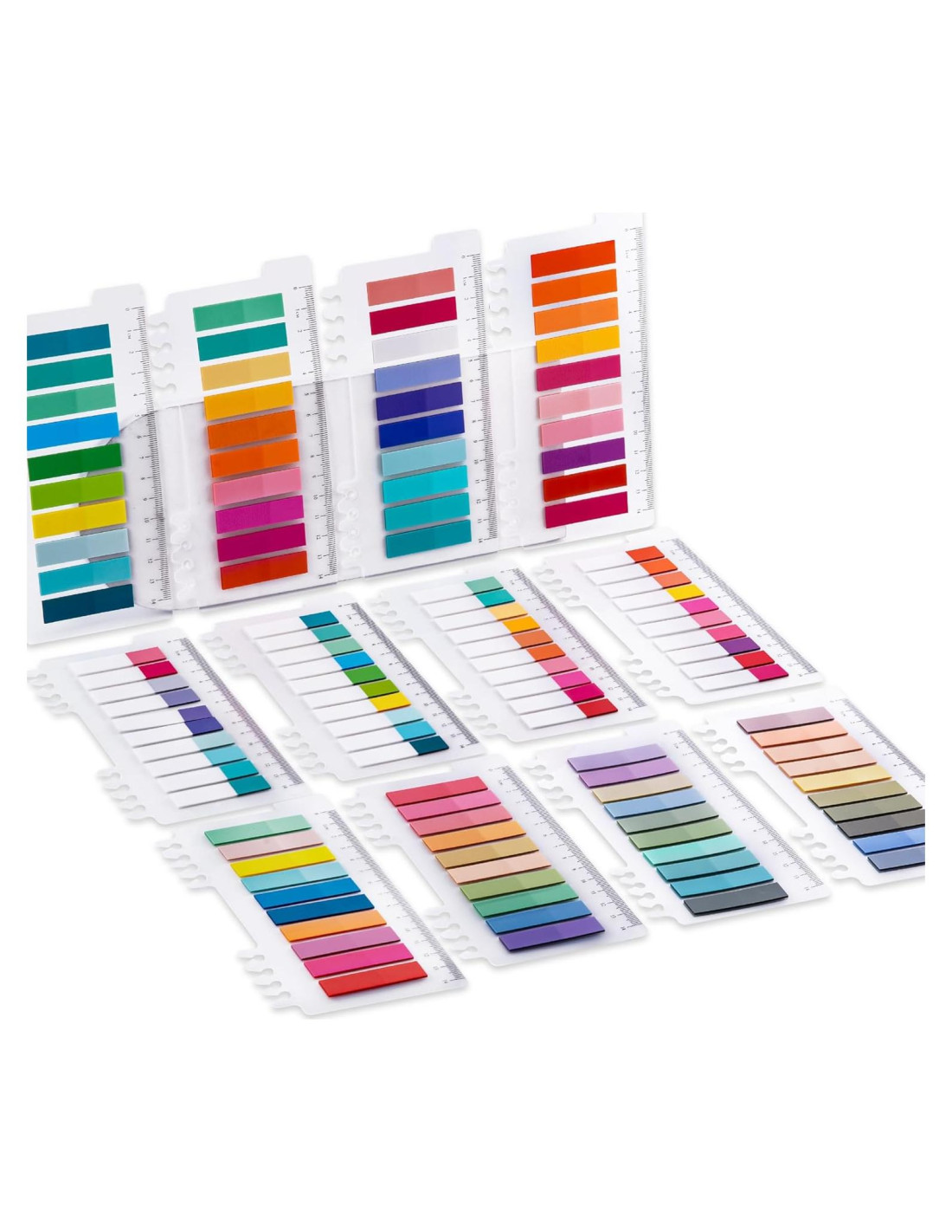 - [AMPLIA APLICACIÓN] Las pestañas adhesivas translúcidas para libros se pueden usar para clasificar y marcar documentos, tableros de mensajes de computadora, notas de lectura, libros, carpetas, diarios, catálogos, archivos, documentos y papeles, y son muy adecuadas para estudiantes, maestros y trabajadores de oficina. Al usar las teclas de índice de múltiples colores son más prominentes, ahorrándote tiempo y mejorando la eficiencia del aprendizaje.