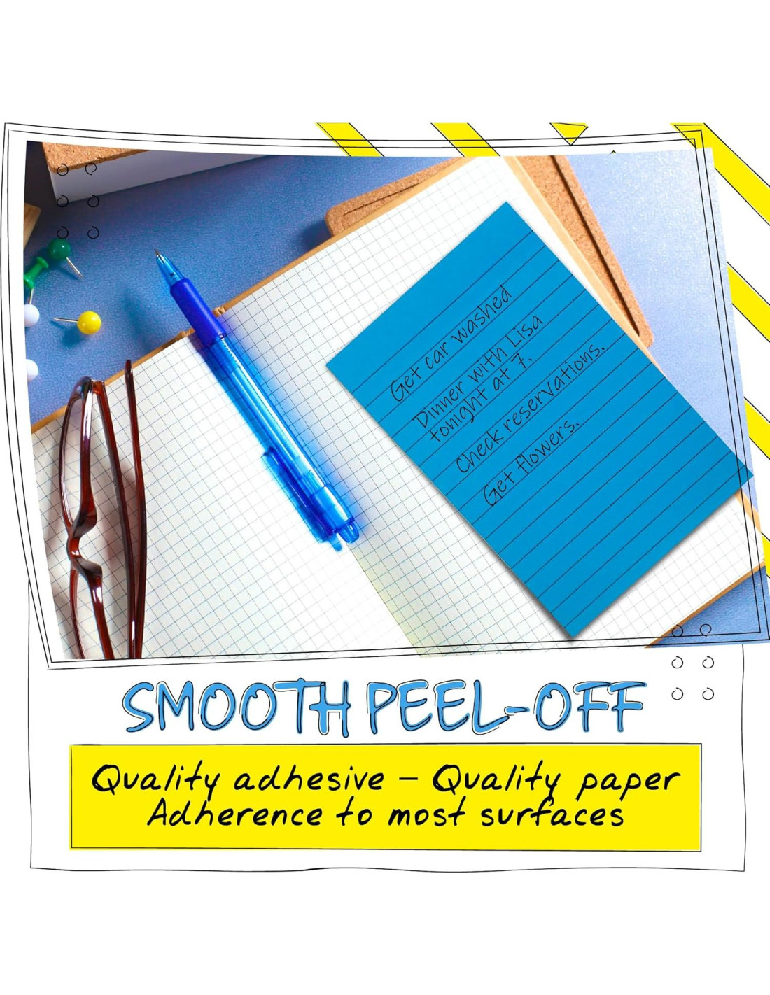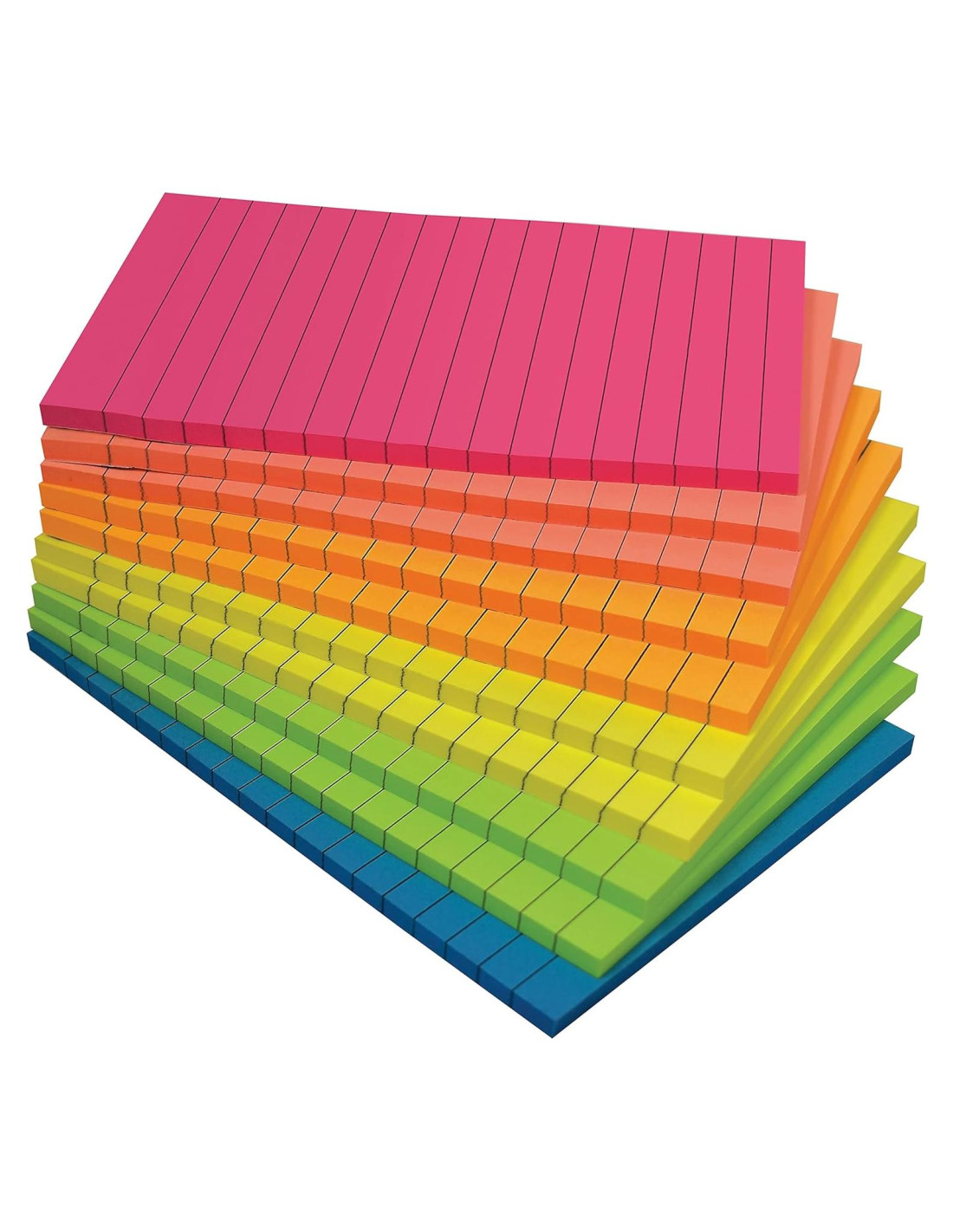 - TAMAÑO GRANDE - Notas adhesivas rayadas de 10 Paquete (6 colores brillantes variados), 50 hojas por pad