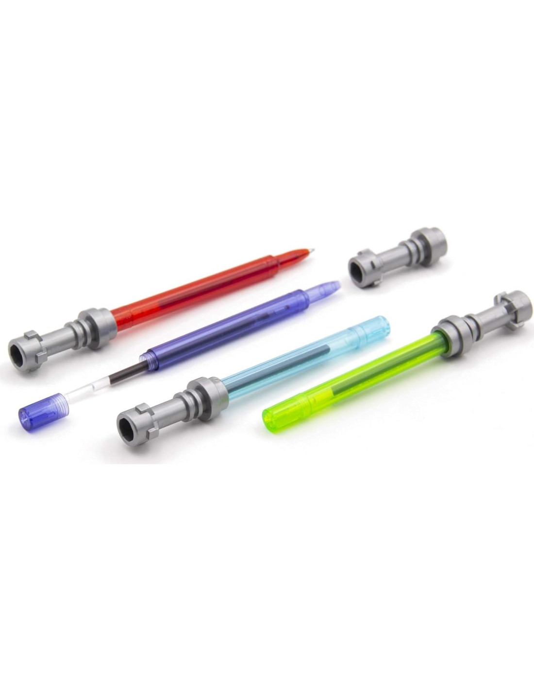 - 4 bolígrafos de gel Sable de Luz LEGO Star Wars con licencia oficial en rojo, azul, verde y púrpura. COLORES: Cada color de tinta de bolígrafo coincide con el color del Sable de Luz - Rojo, Azul, Verde y Púrpura. TAMAÑO: Cada bolígrafo mide aproximadamente 5.25" (13.34 cm). CARACTERÍSTICAS: Tapa de empuñadura removible. Retira la punta protectora de los bolígrafos antes de usarlos para asegurar una escritura suave.