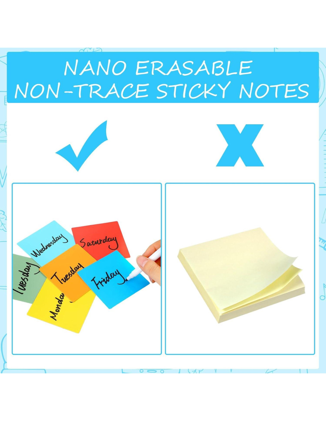 - Borrable y Lavable: las notas adhesivas reutilizables utilizan la película nano borrable, incluso después de dejar las escrituras en las notas durante mucho tiempo, el material nano hará que tus escrituras sean fáciles de borrar; Sin preocupaciones sobre las manchas, nuestras notas adhesivas están hechas de materiales lavables, solo lávalas y se volverán como nuevas