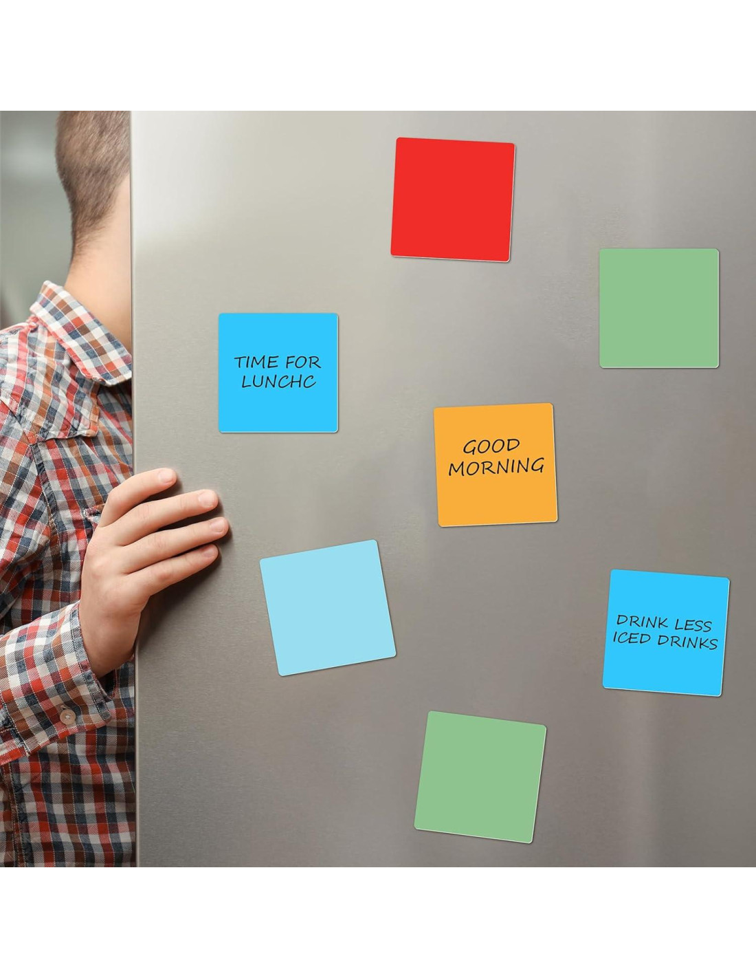 - Se Adhiere Como un Imán (no es un imán): nuestras notas adhesivas borrables se pueden aplicar a superficies lisas, vidrio, nevera, computadora portátil, pared pintada, pizarra, espejo, nevera de acero inoxidable, puerta, mesa, caja de almacenamiento de plástico y más lugares, respaldo reutilizable, evita la pérdida de información y se pueden quitar fácilmente de la placa de respaldo, reduciendo el pegamento residual que es difícil de limpiar