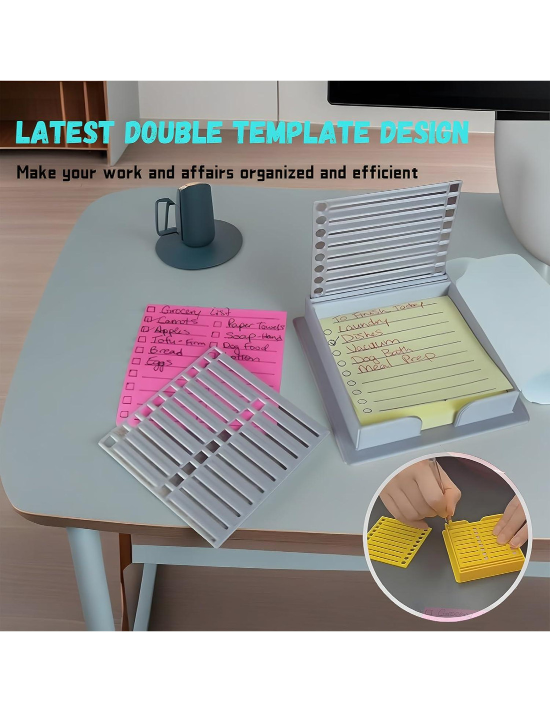 - [Almacenamiento Protector] La plantilla de nota adhesiva y el soporte pueden proteger tus notas adhesivas del polvo, derrames o daños por arrugas. El diseño seguro asegura que tus notas adhesivas permanezcan intactas. Un paquete de notas adhesivas está incluido en el paquete para que las uses