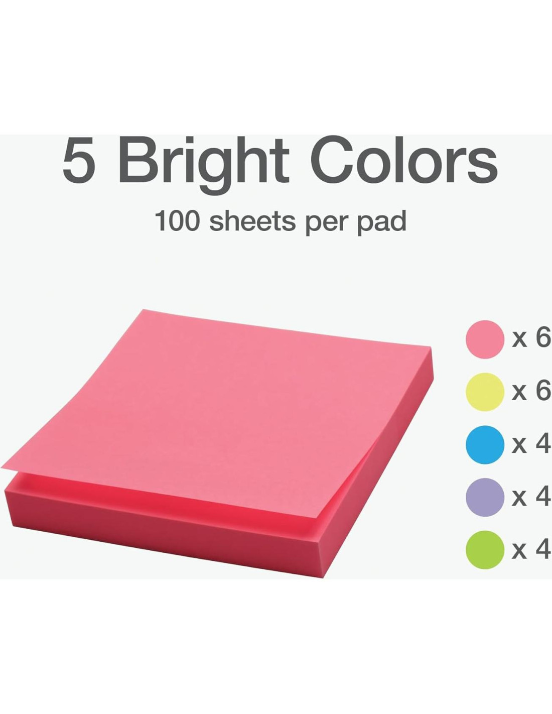 Estas Notas Power Stick de Redi-Tag son ideales para crear recordatorios, anotar listas de tareas, estudiar y tomar notas, y hacer seguimiento de proyectos. Los colores brillantes variados aseguran que tus notas e ideas se destaquen. Cada nota adhesiva cuenta con un adhesivo muy fuerte a base de agua, y cada nota puede pegarse y despegarse, permitiéndote reposicionarlas siempre que y donde las necesites. Se quitan fácilmente y nunca dejan residuos pegajosos. Son perfectas para adherirse a paredes, libros, refrigeradores y en cualquier otro lugar donde necesites recordatorios coloridos. Estos blocs de notas super adhesivos son excelentes para dejar recordatorios para ti y para otros, y son perfectos para listas de compras, notas escolares o laborales en la pantalla de tu computadora, hacer seguimiento de tareas semanales y diarias, fechas de entrega, y para codificar por colores tus libros de texto o documentos. Las notas adhesivas son reciclables, así que puedes reciclarlas cuando ya no las necesites. Los paquetes de 24 notas adhesivas son perfectos para abastecerte. Las notas adhesivas son ideales para estudiantes, maestros o cualquier persona que necesite una organización colorida y brillante. Cada nota mide 7.62 cm x 7.62 cm y viene en 24 blocs de 100 hojas por bloc. Los blocs de notas vienen en colores brillantes variados: 6 rosas, 6 amarillas, 4 moradas, 4 azules y 4 verdes. Un total de 2400 hojas.