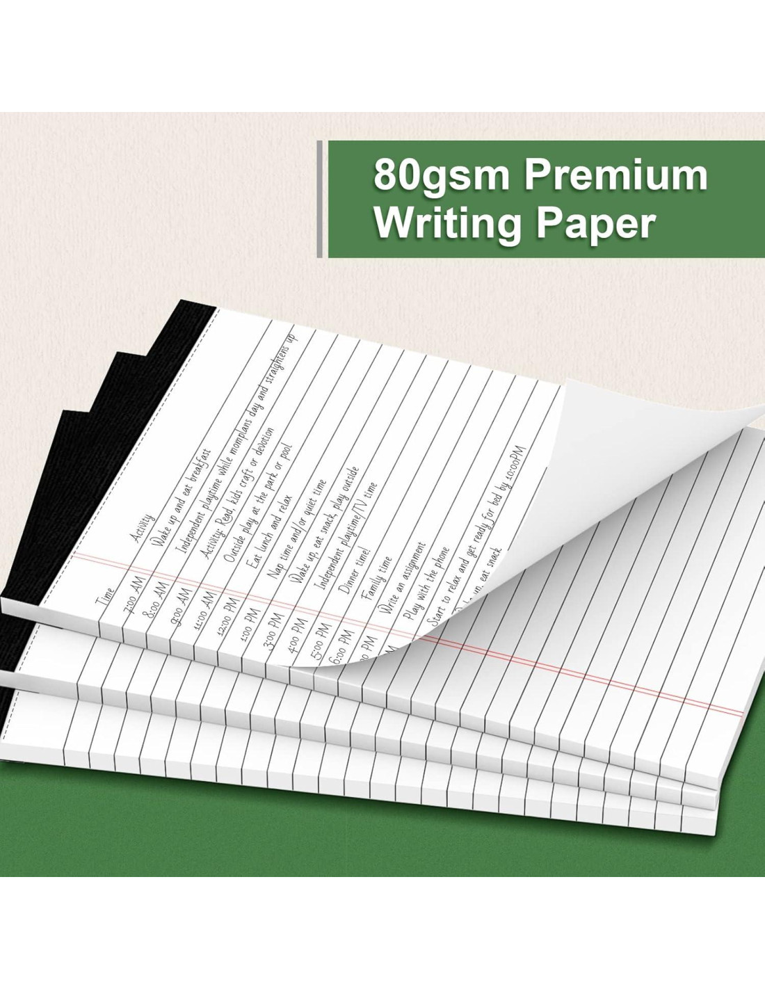 - [Excelente Experiencia de Escritura] Redescubre la alegría de escribir con nuestros blocs de notas. El rayado medio ofrece amplio espacio para tus notas, mientras que el papel de peso premium de 80gsm/21lb asegura que tus bolígrafos y plumas de gel se deslicen sin esfuerzo por la página. Nuestros blocs legales con rayas universitarias evitan el traspaso de tinta y el sangrado, asegurando que tu escritura se mantenga visible y en la superficie. Nuestros blocs de papel son más gruesos que el promedio, reduciendo el fantasma y asegurando una experiencia de escritura suave.