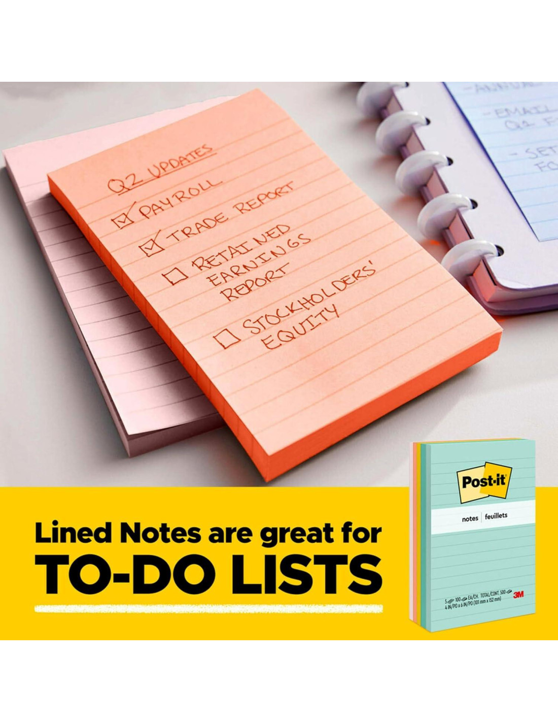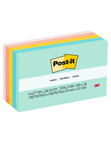 - MANTENTE ORGANIZADO: Cada paquete incluye 5 blocs de notas de 3 pulg x 5 pulg (7.62 cm x 12.7 cm), con 100 hojas por bloc, ideales para tu oficina, área de trabajo o aula