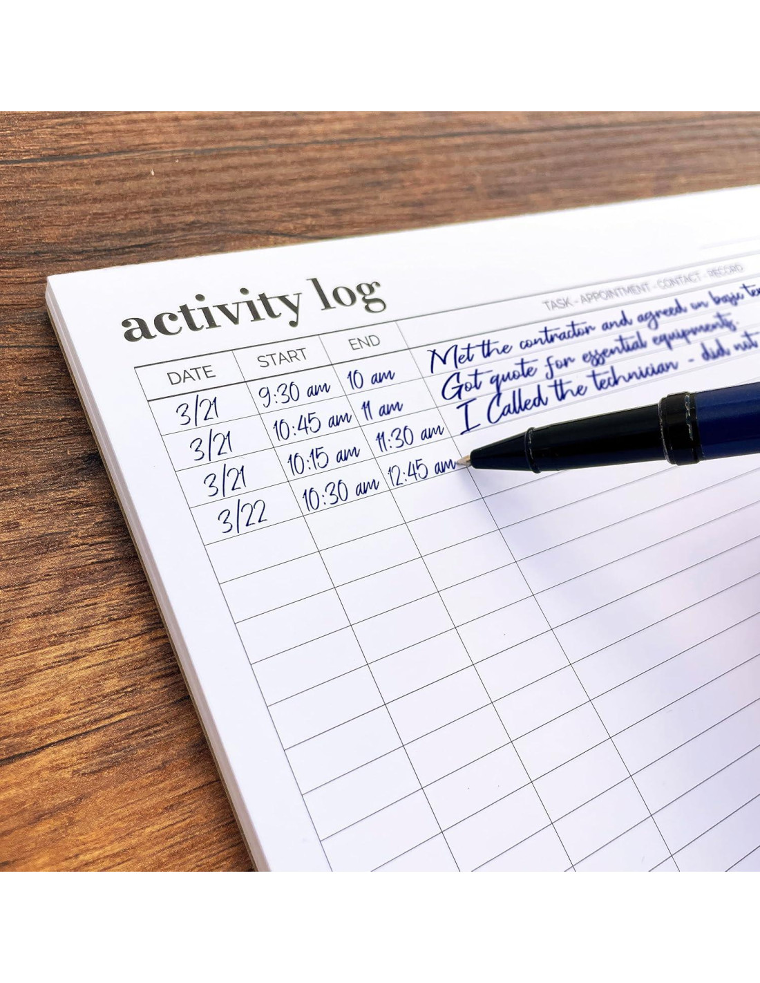 - 50 Hojas para Longevidad: Con 50 hojas generosamente dimensionadas, nuestro Bloc de Notas de Registro de Actividades te durará mucho tiempo, convirtiéndolo en el compañero perfecto para tus necesidades de planificación y programación diarias. Una gran alternativa para quienes no les gustan los planificadores digitales.