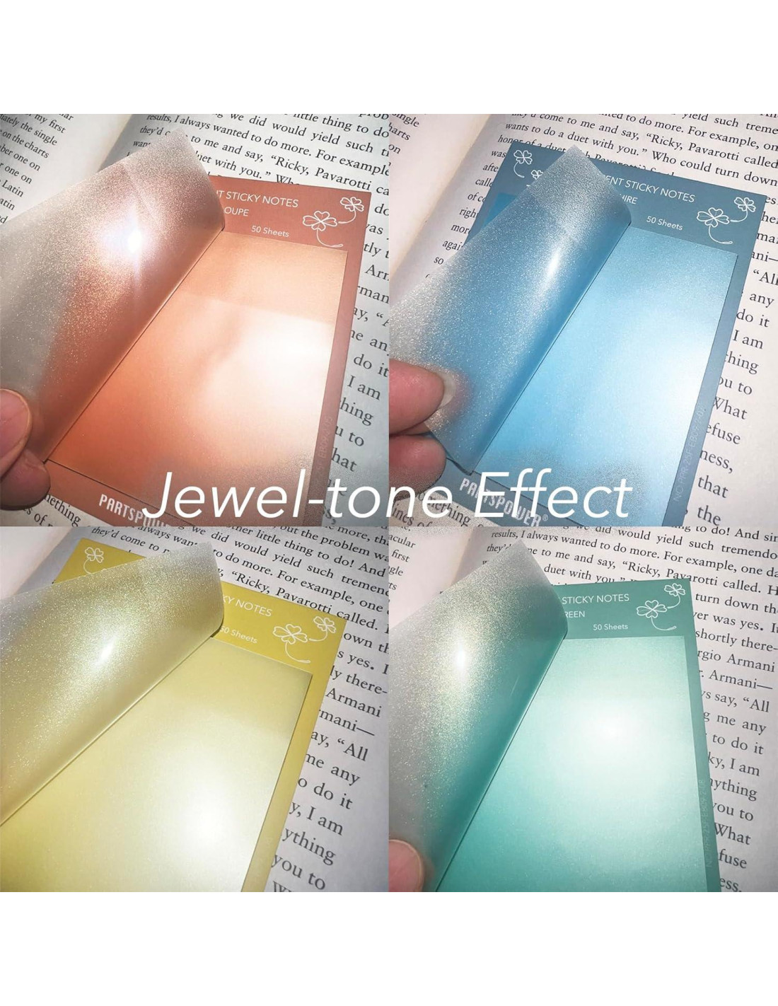 Notas adhesivas transparentes en tonos joya, PARTSPOWER 4 paquetes de 3x3 pulgadas, notas adhesivas super transparentes para anotar, suministros para journaling bíblico, suministros de oficina y escuela