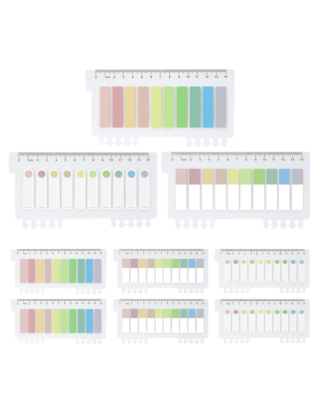 - Amplia gama de usos: Los marcadores de libros contienen 10 colores, puedes ver las banderas de marcado de un vistazo. Y cada versión de la nota adhesiva tiene una regla transparente para facilitar el marcado de páginas.