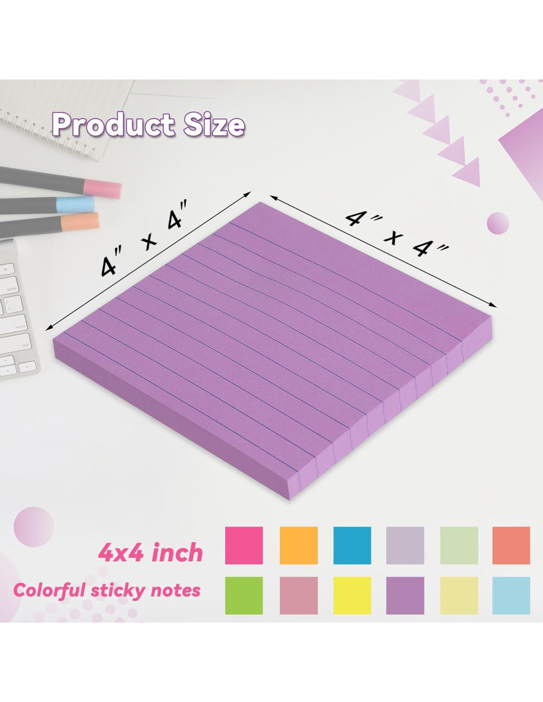 - Tamaño Portátil -- 10 cm x 10 cm, 12 blocs/paquete (12 colores variados de notas adhesivas rayadas), 45 hojas/bloc. Son un poco más grandes que las notas adhesivas de 7.5x7.5 cm. Mantente organizado con notas adhesivas rayadas, puedes anotar tus tareas diarias, generar grandes ideas, estudiar o establecer recordatorios