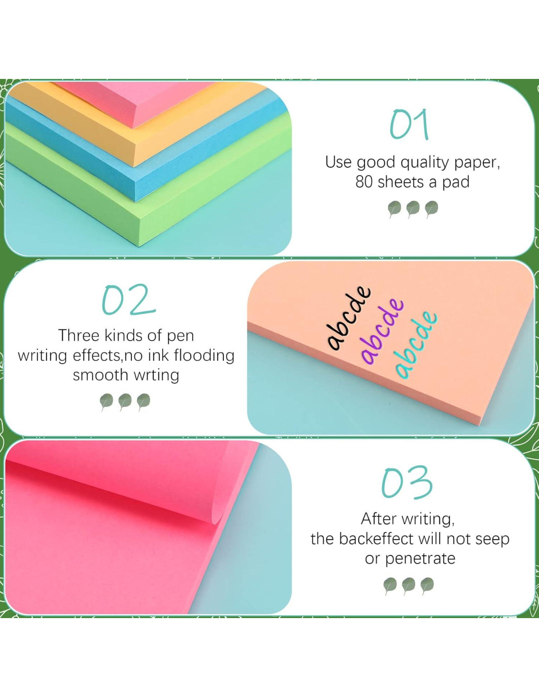- El paquete contiene: hay 40 paquetes de notas adhesivas de color brillante en 76 x 76 mm con 8 colores, incluyendo colores fluorescentes y convencionales; Los colores fluorescentes son amarillo, verde, naranja, rosa, rojo rosa, y los convencionales son azul lago, púrpura y amarillo; Cada color tiene 5 paquetes y cada paquete tiene 80 páginas.