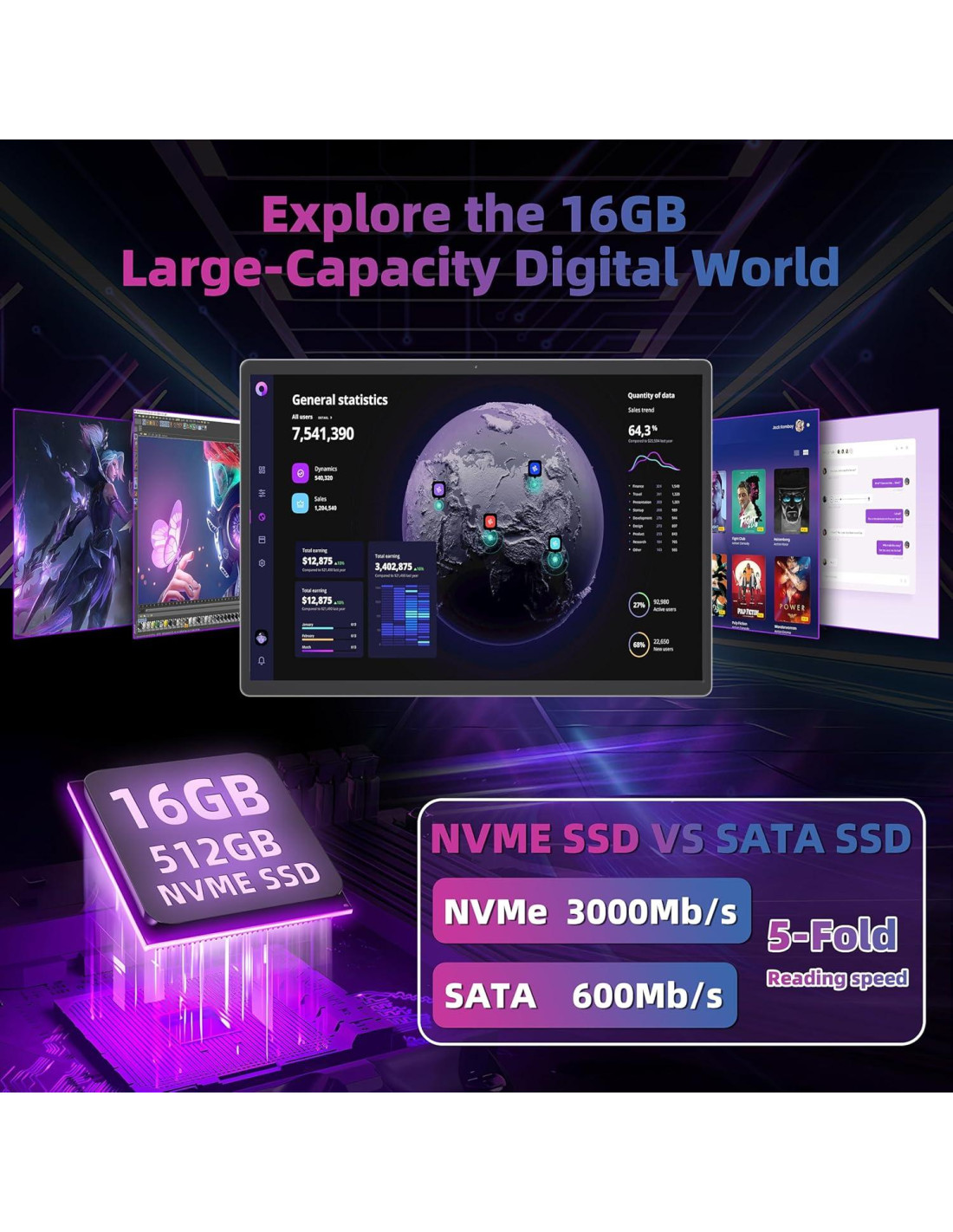 - [Gran capacidad de almacenamiento] La memoria RAM DDR4 de 16G/512GB NVME puede ejecutar múltiples aplicaciones y navegadores simultáneamente, satisfaciendo las necesidades de todos los usuarios. Los discos duros NVMe utilizan la interfaz de transferencia de datos de alta velocidad PCIe, que equilibra bajo consumo de energía y alta eficiencia en comparación con las interfaces SATA tradicionales. Tiene mayor ancho de banda y menor latencia. Realiza velocidades de lectura y escritura de datos más rápidas, mejorando enormemente la velocidad de respuesta del sistema y la eficiencia de transferencia de archivos.