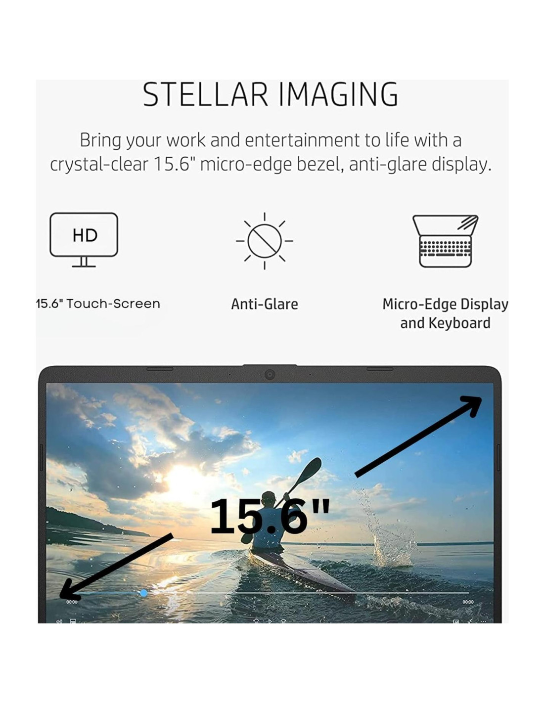 - [Pantalla] 15.6" diagonal, HD (1366 x 768), táctil, micro-bisel, BrightView, 220 nits, 45% NTSC, Pantalla Táctil, disfruta de tus fotos, películas y juegos con la calidad nítida.