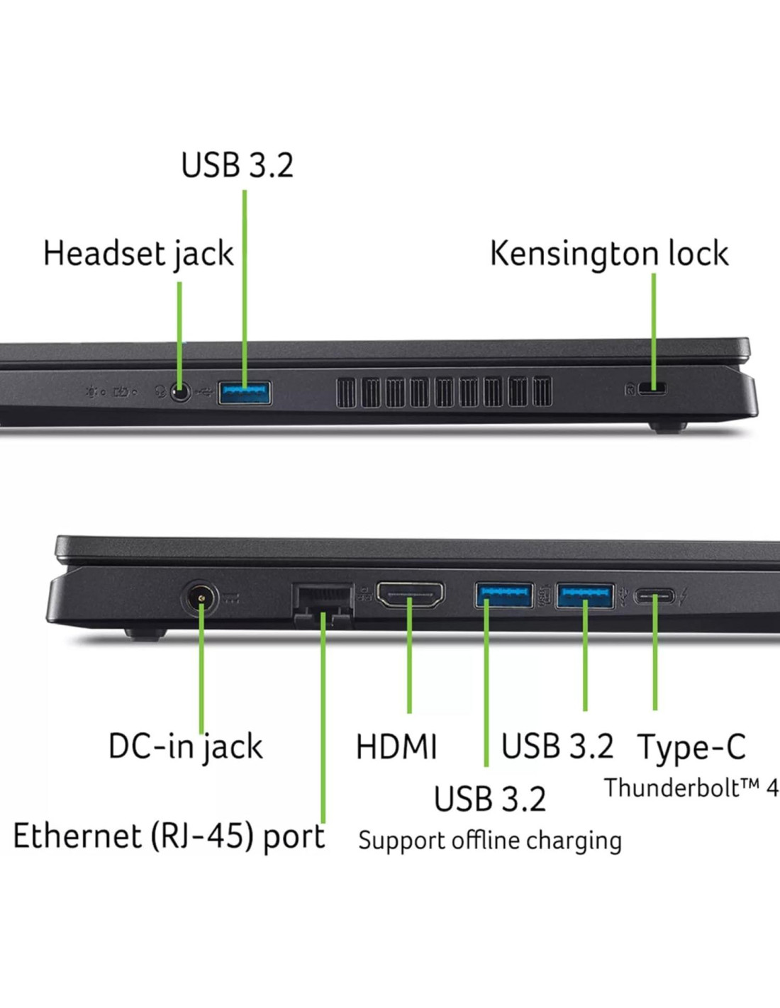 Eleva tu aventura de juegos con el Acer Nitro V 15, tu puerta de entrada a un viaje lleno de adrenalina. Esta laptop es la combinación perfecta de potencia y estilo, empujando los límites de lo que es posible en una laptop. Impulsada por un procesador Intel Core de 13 Generación y gráficos NVIDIA GeForce RTX de la serie 40, y mostrando una pantalla Full HD de 15.6 con un panel IPS de 144Hz, puedes ver por qué el Nitro V 15 es un éxito rotundo para jugadores de todos los niveles. Pantalla: 15.6" FHD (1920 x 1080) IPS Antirreflejo relación de aspecto 16:9 Pantalla retroiluminada por LED, Tasa de Refresco de 144Hz Procesador: Intel Core i7-13620H 10 Núcleos (Frecuencia Base 2.4 GHz, hasta 4.9 GHz con Tecnología Intel Turbo Boost, 24 MB de caché Intel Smart 10 núcleos, 16 hilos) Gráficos: NVIDIA GeForce RTX 4060 8GB GDDR6 Teclado: Teclado retroiluminado de tamaño completo con Numpad Comunicaciones: Intel Wi-Fi 6 y Bluetooth 5.2 Cámara: Cámara HD 720p Puertos y Ranuras: 1 x USB Thunderbolt 4 / USB4 40Gbps Tipo-C soporte Transferencia de Datos / Entrega de Energía / DisplayPort a través de USB Tipo-C, 3 x USB 3.2 Gen 1 Tipo-A, 1 x HDMI v2.1, 1 x Conector Combinado de Auriculares/Micrófono, 1 x RJ-45 LAN Alimentación y Batería: Adaptador AC de 135W, Batería de 4 celdas 57Wh, hasta 6 horas en uso promedio Tamaño y Peso: 14.26 x 9.44 x 0.93 pulgadas (36.2 x 24 x 2.36 cm), 4.66 lbs (2.11 kg). Color: Negro Obsidiana